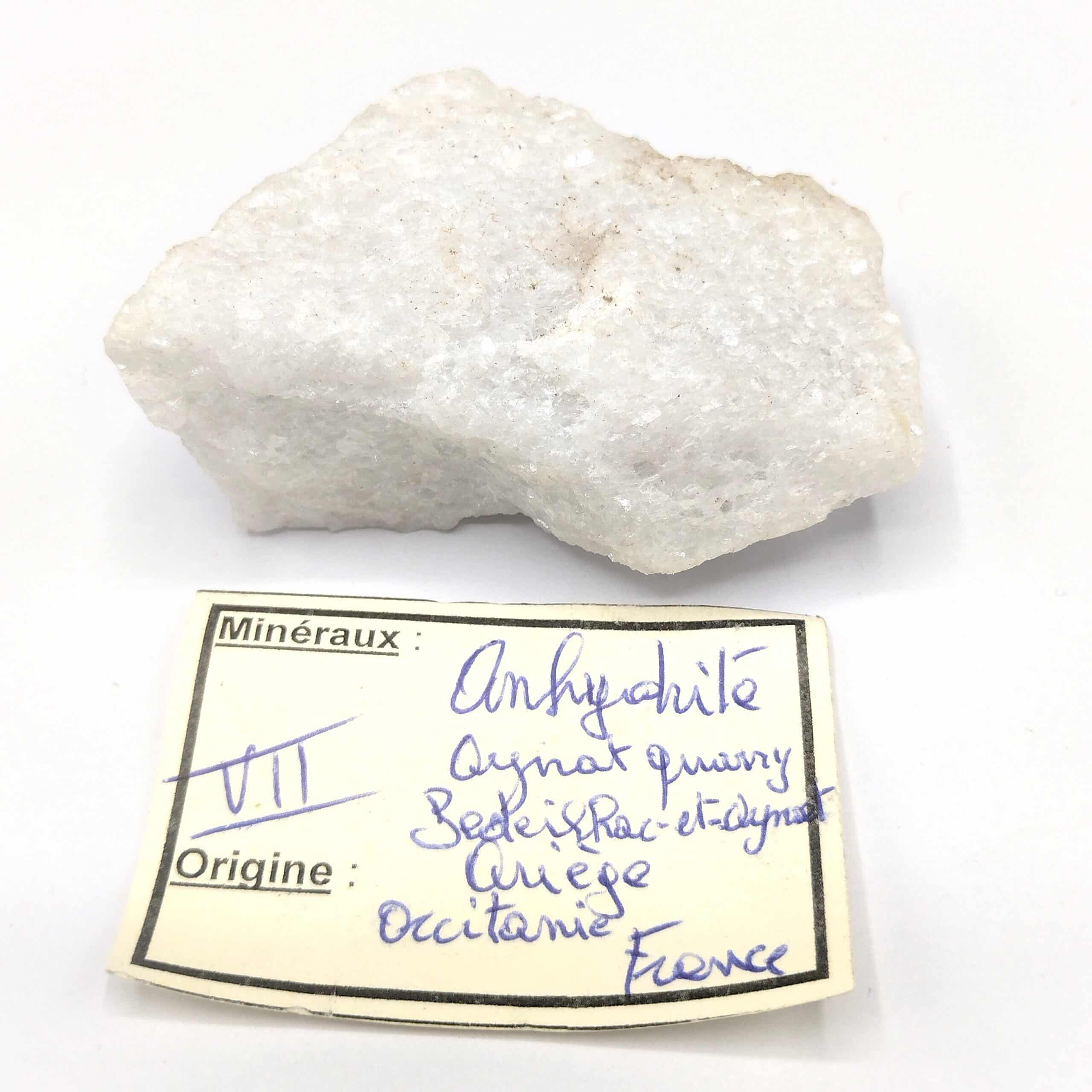 Spécimen de cristaux d’anhydrite en provenance de la carrière d’Aynat dans le département de l’Ariège.