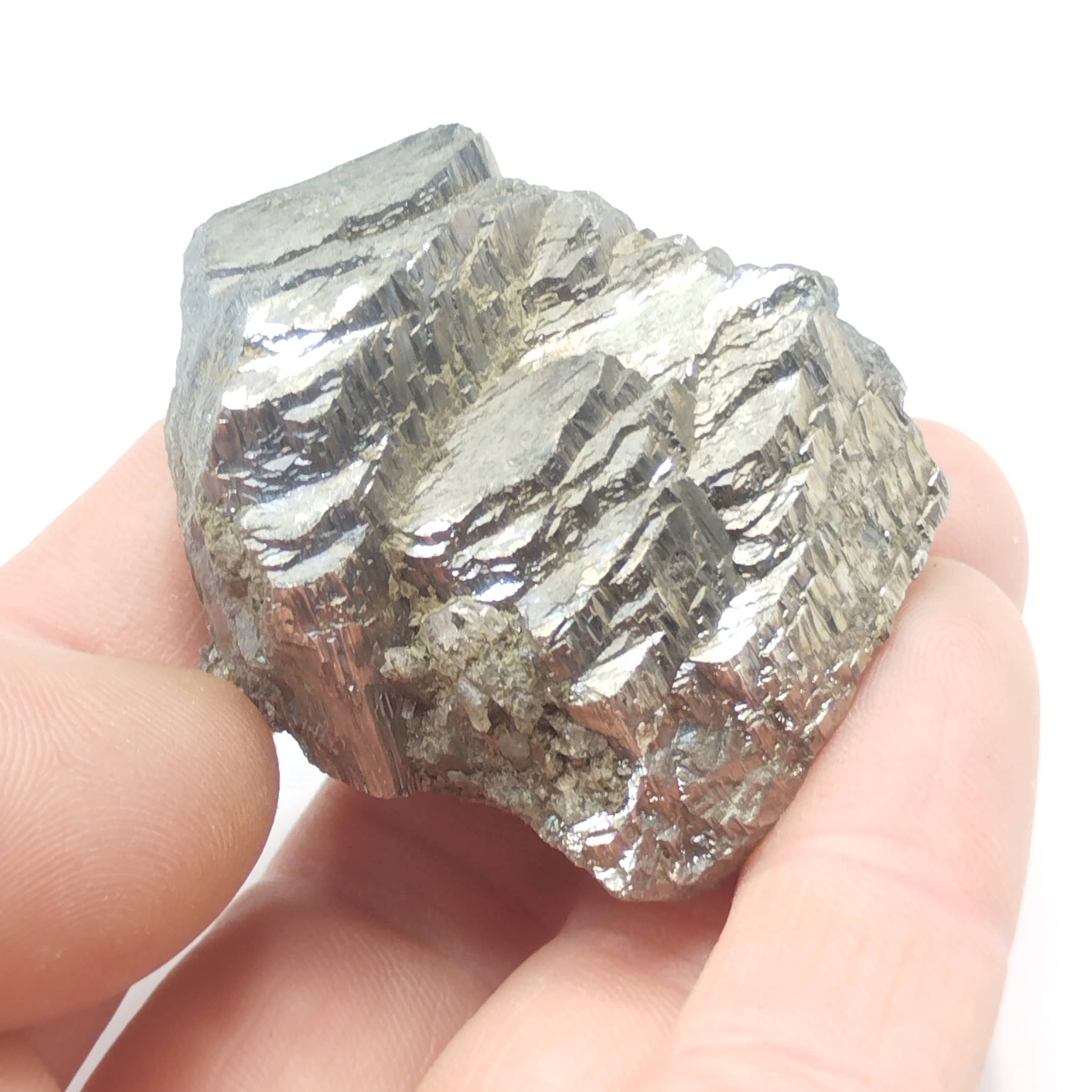 Bon cristal d’arsénopyrite (ou mispickel) assez bien terminé, et de belle facture générale en provenance des mines de Panasqueira au Portugal.