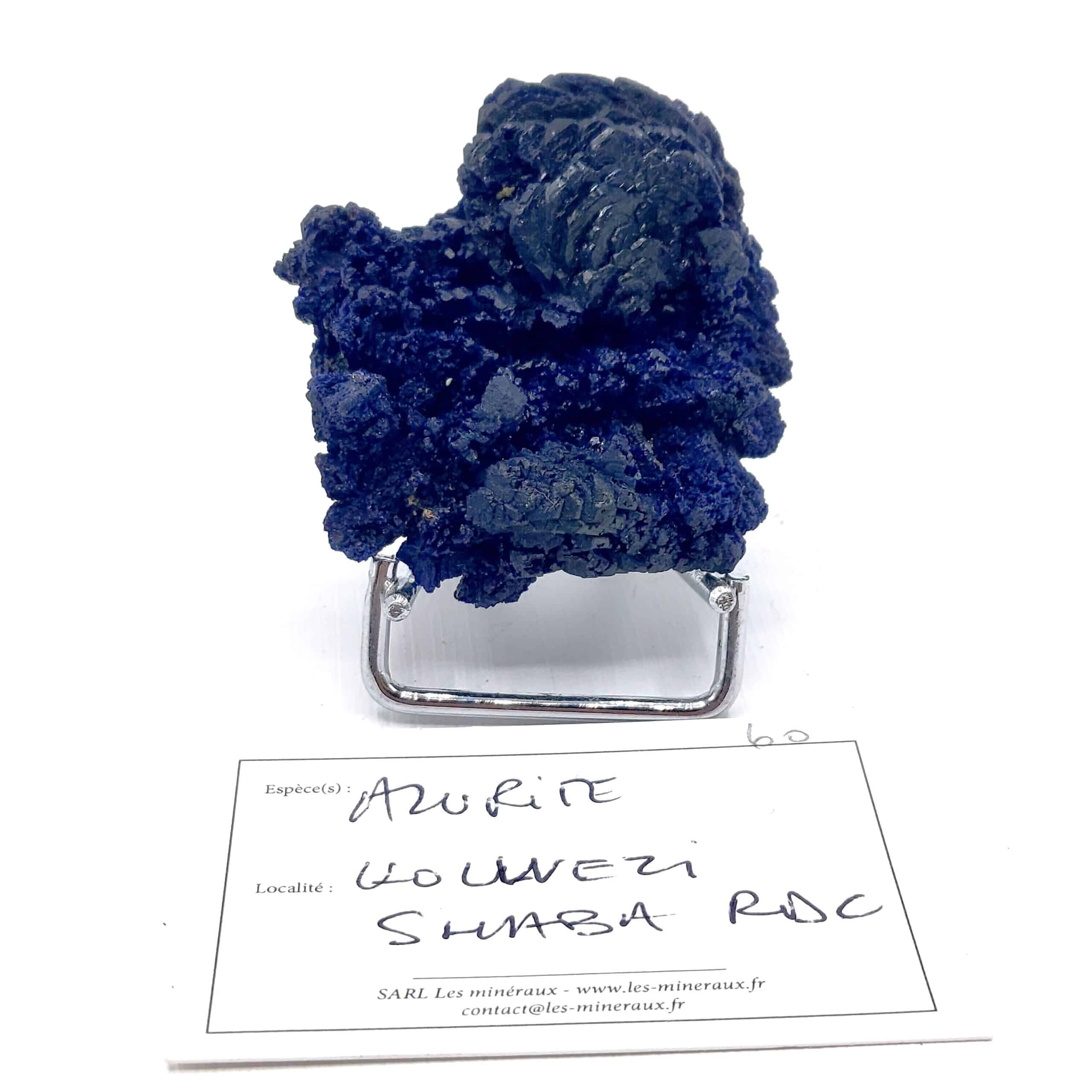 L’azurite de Kolwezi vraiment exceptionnelle ! Kolwezi, située dans la province du Lualaba en République Démocratique du Congo, est réputée pour ses gisements minéraux impressionnants, notamment pour les spécimens d’azurite de grande qualité.