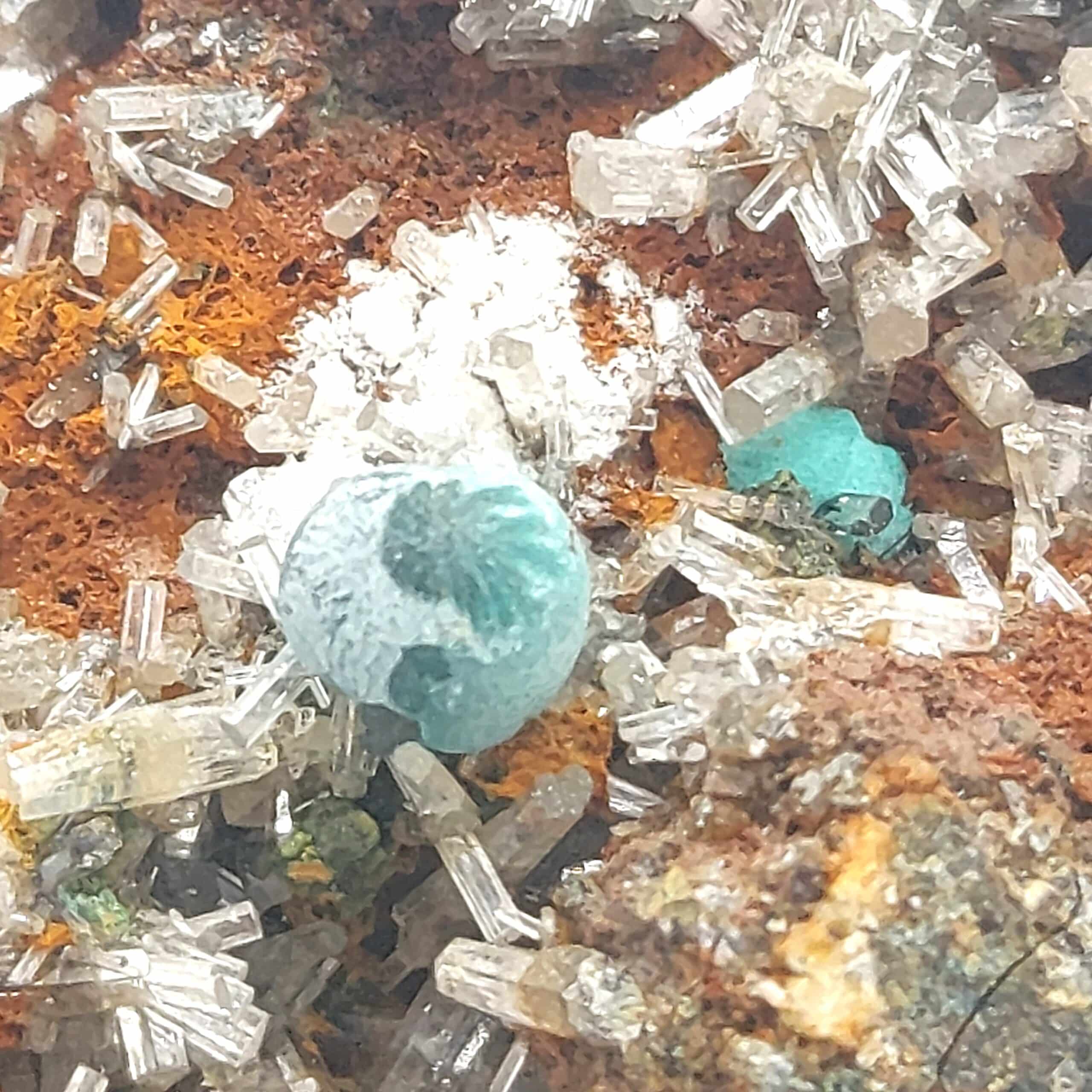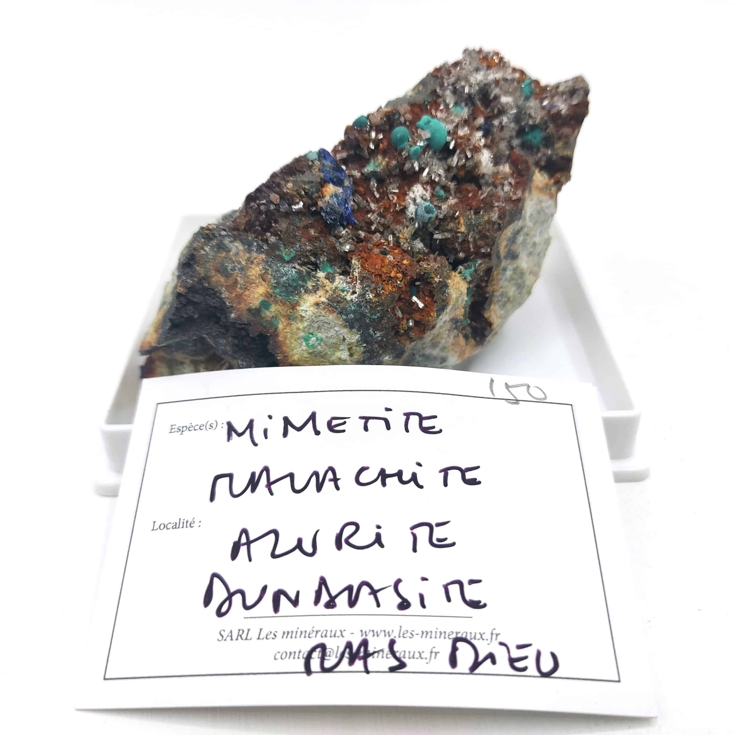 Azurite, Malachite, Mimetite, Dundasite, Mas Dieu, Gard.