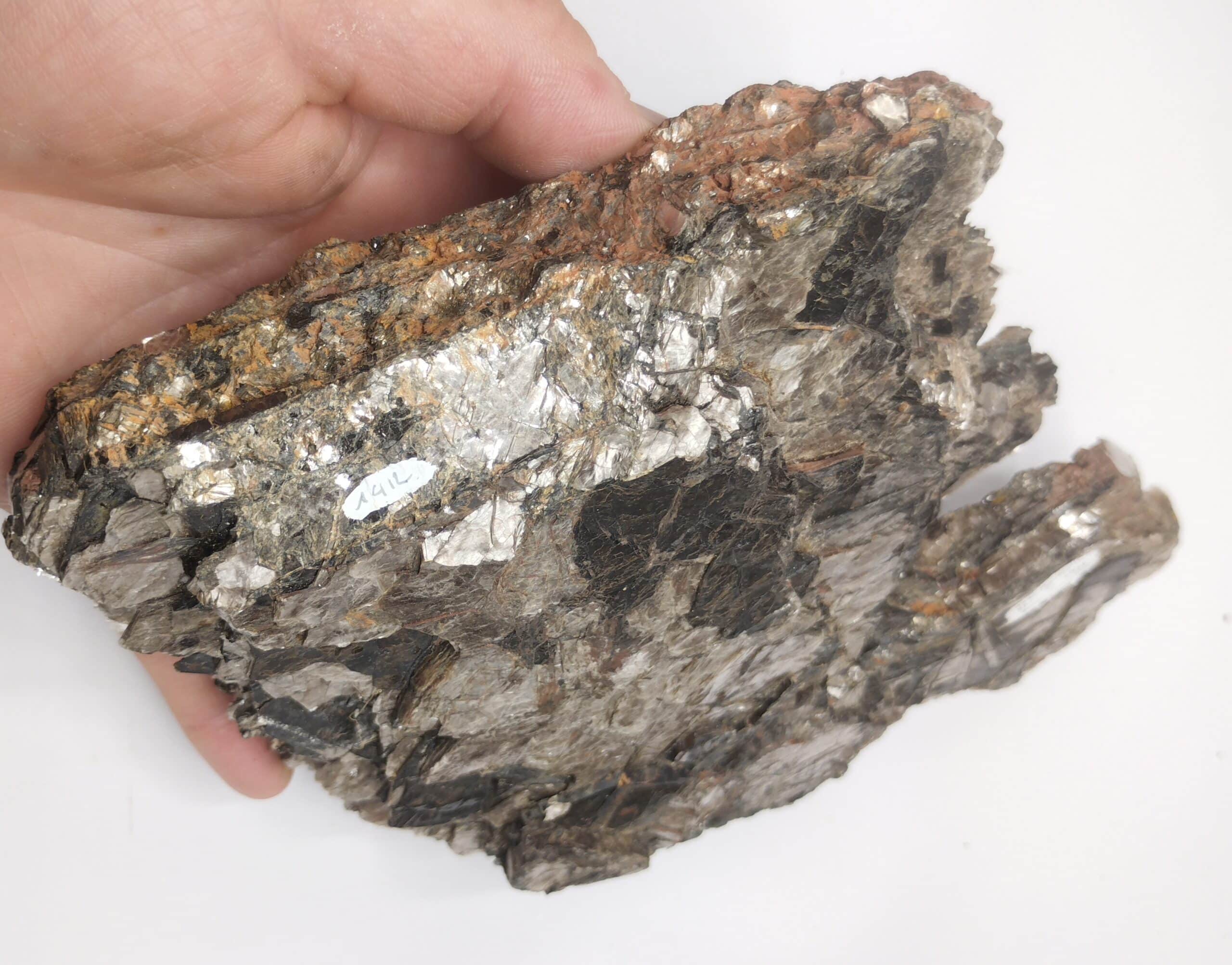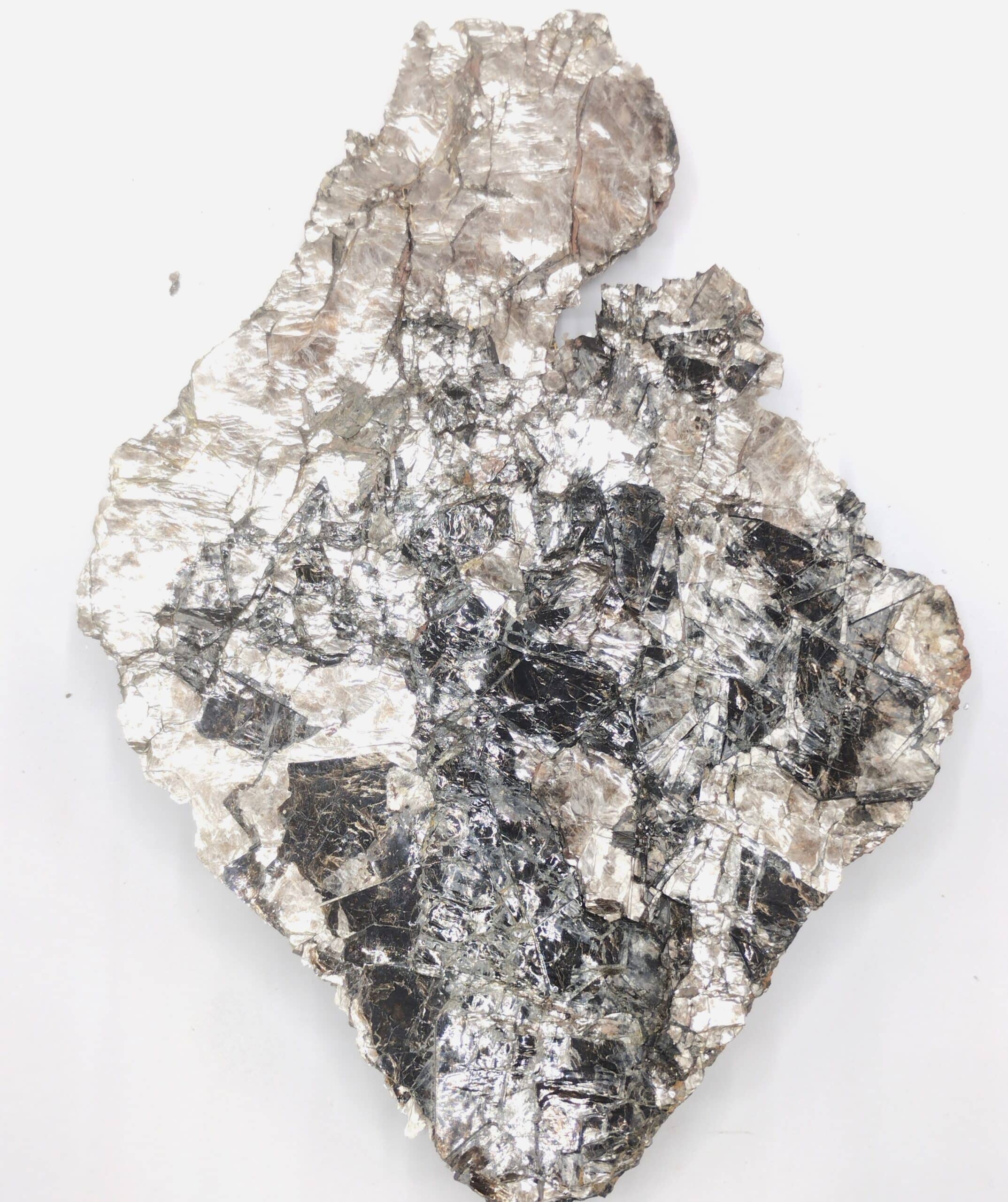 Grand spécimen massif de cristaux de biotite noire et muscovite blanche en provenance des pegmatites du Mas Barbu dans les Monts d’Ambazac, département de la Haute-Vienne.