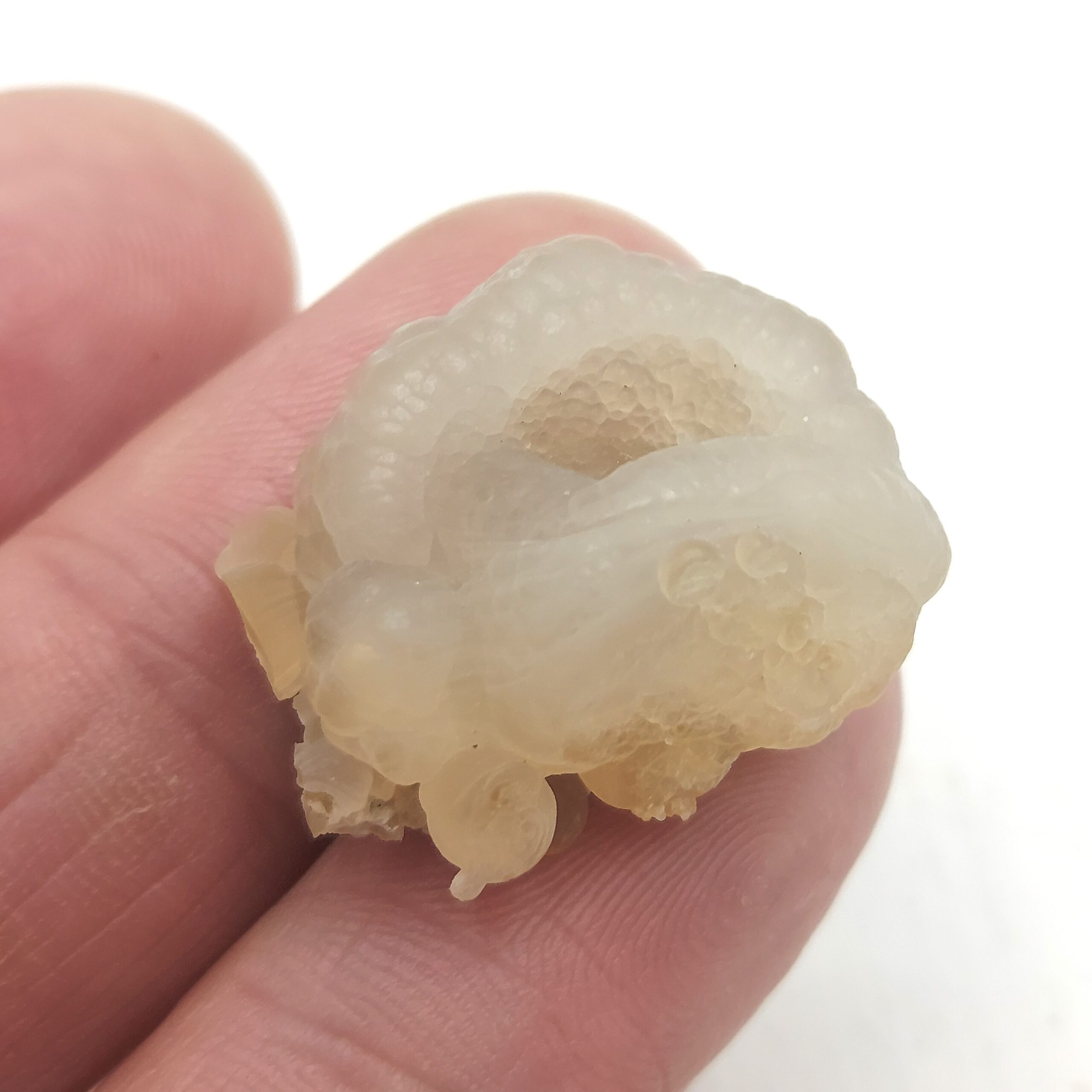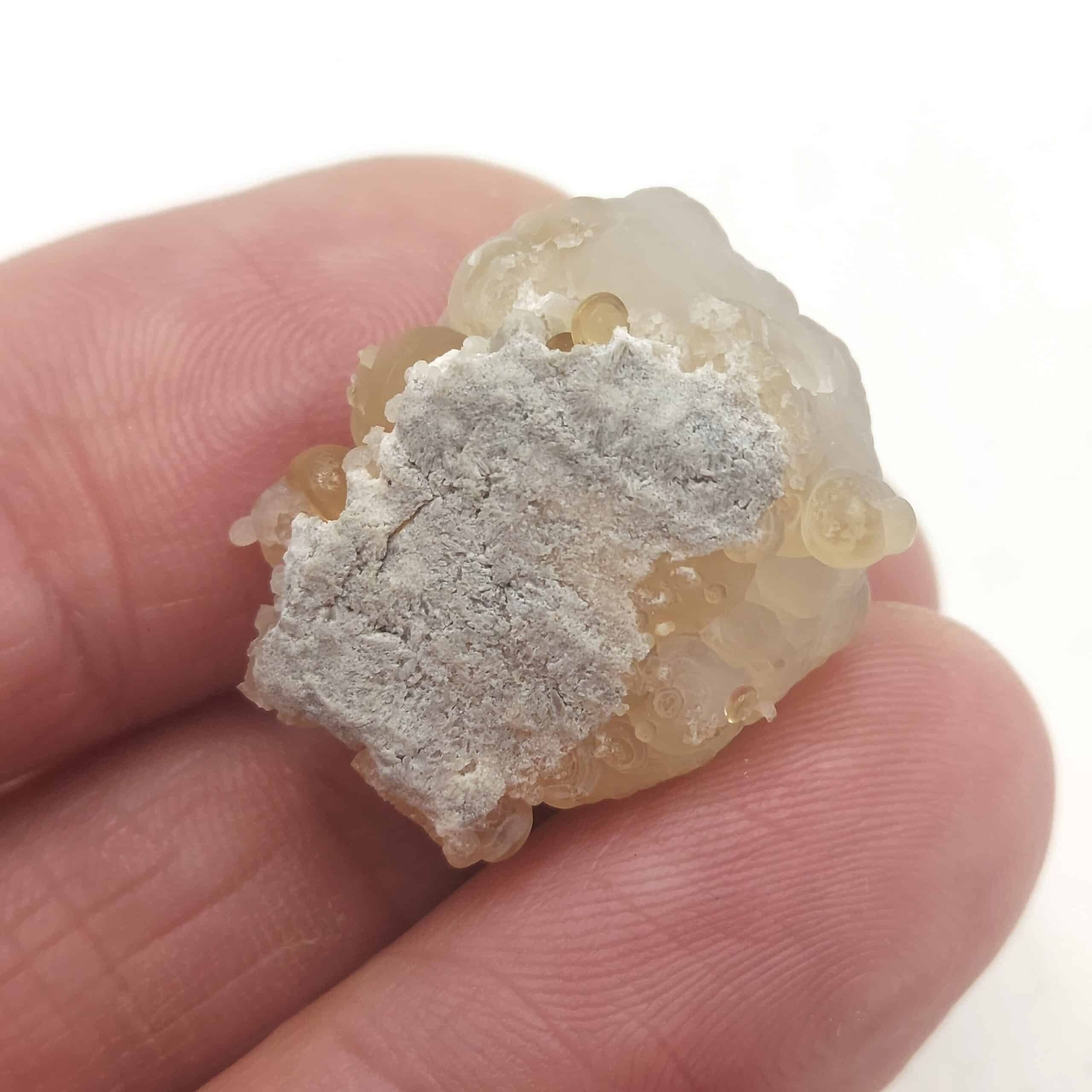 Calcédoine guttulaire translucide, “perles de suif”, en provenance de Aulon, Saint-Gaudens, Haute-Garonne.