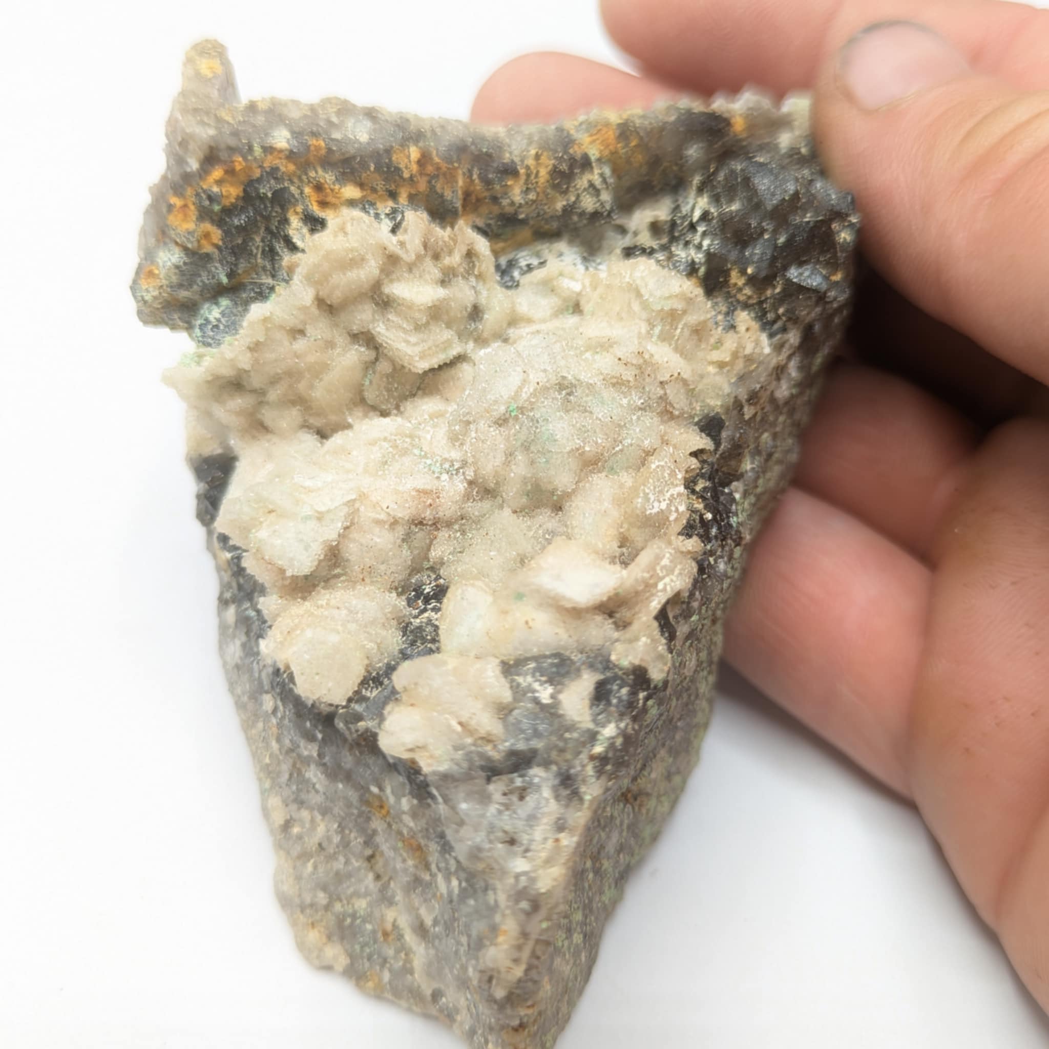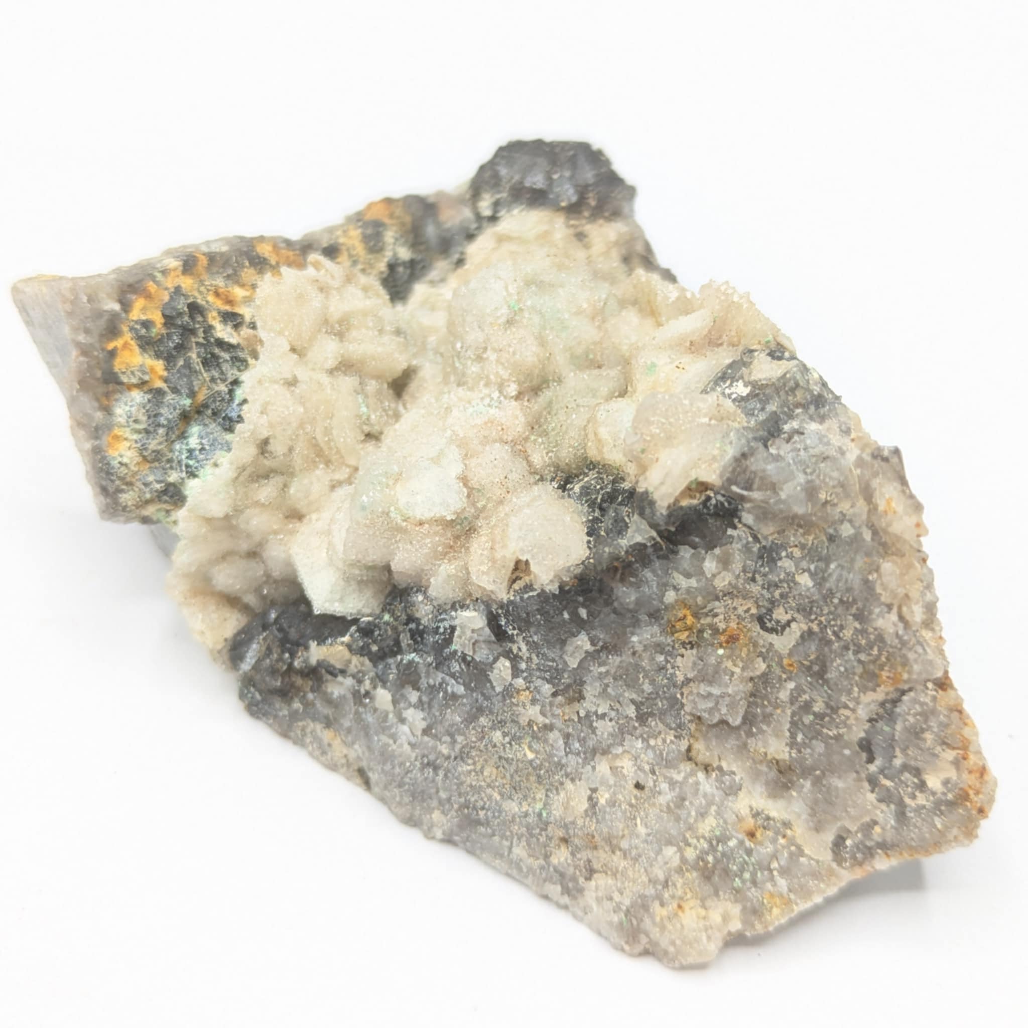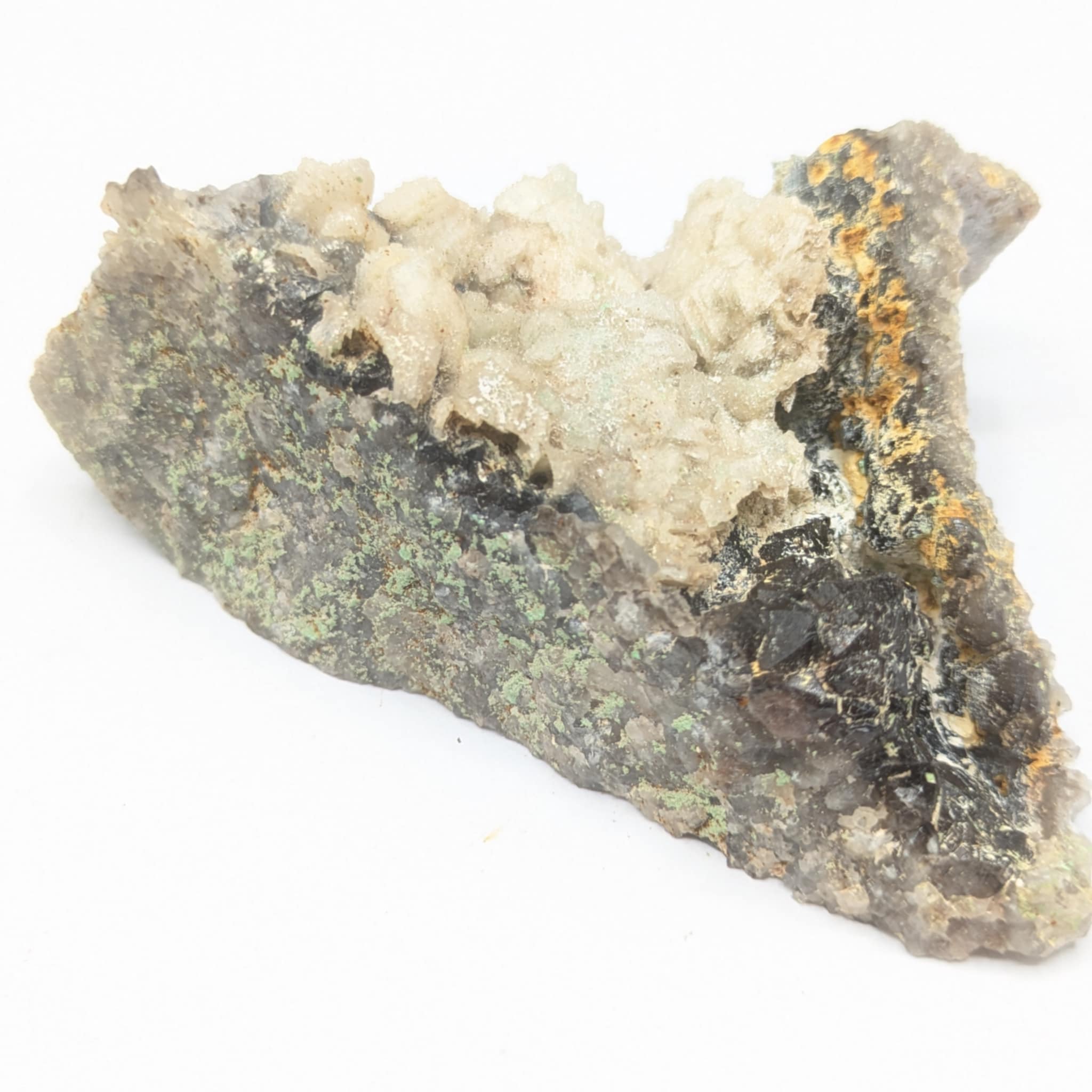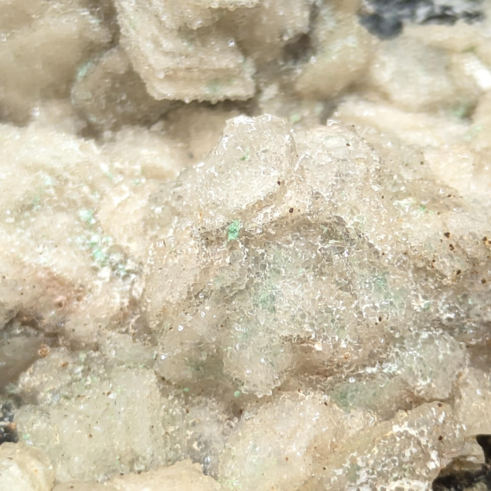 Calcédoine après Calcite, Quartz & Torbernite, Entraygues-sur-Truyère, Aveyron.