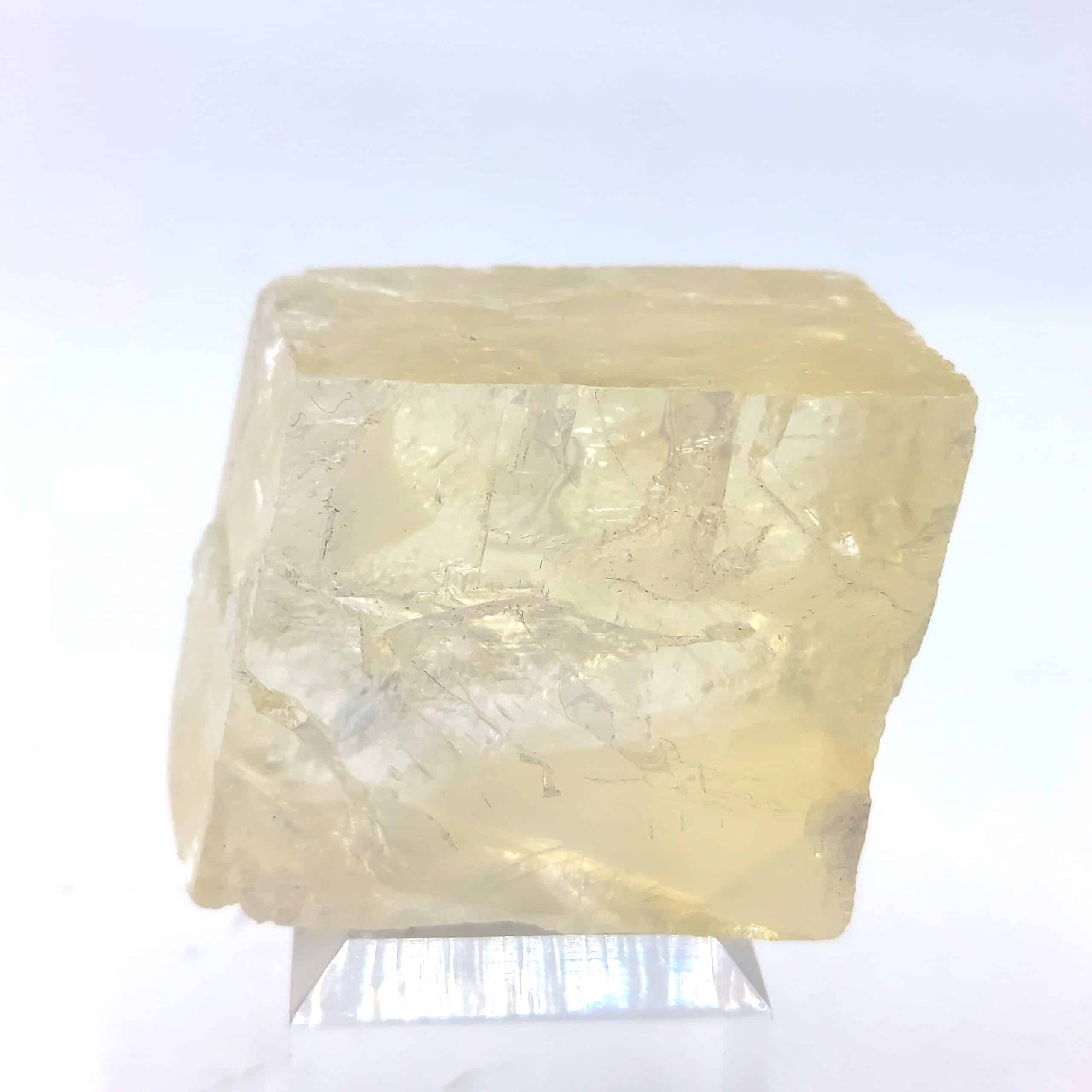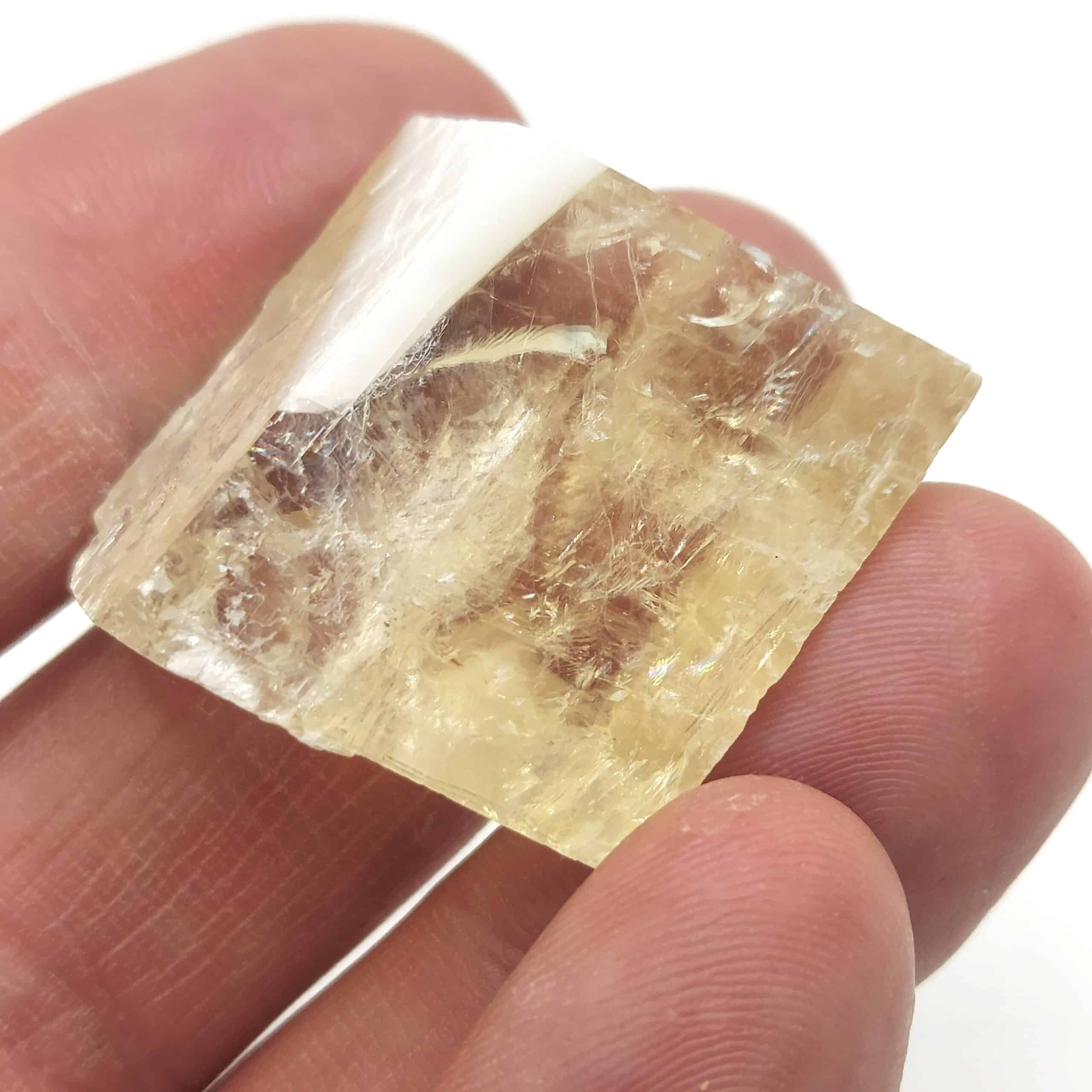 Calcite jaune biréfringente, provenant d’Inde.