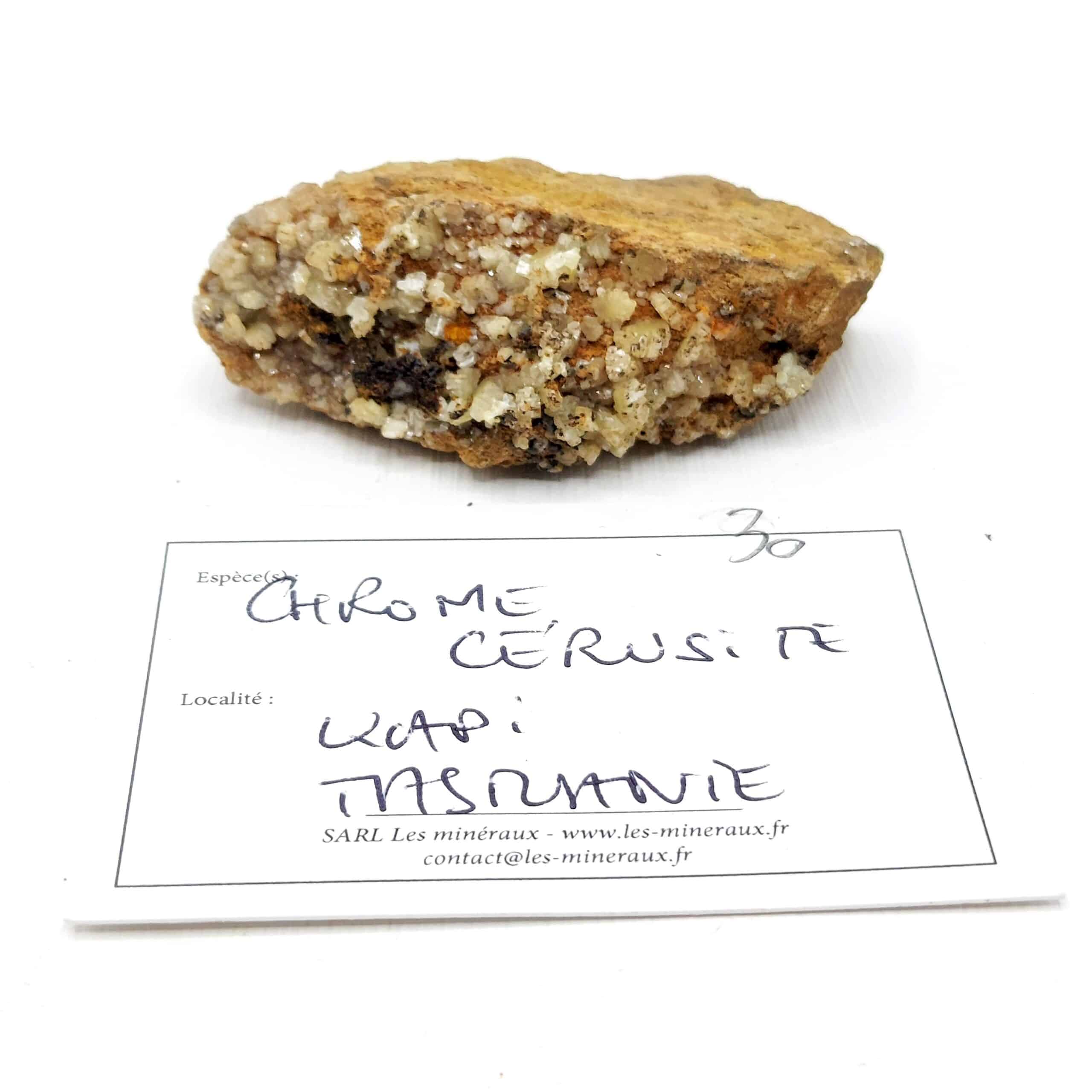 Rare échantillon de cérusite chrome de teinte jaune en provenance de la mine de Kapi, North Dundas, district minier de Zeehan, municipalité de la côte ouest, Tasmanie, Australie.