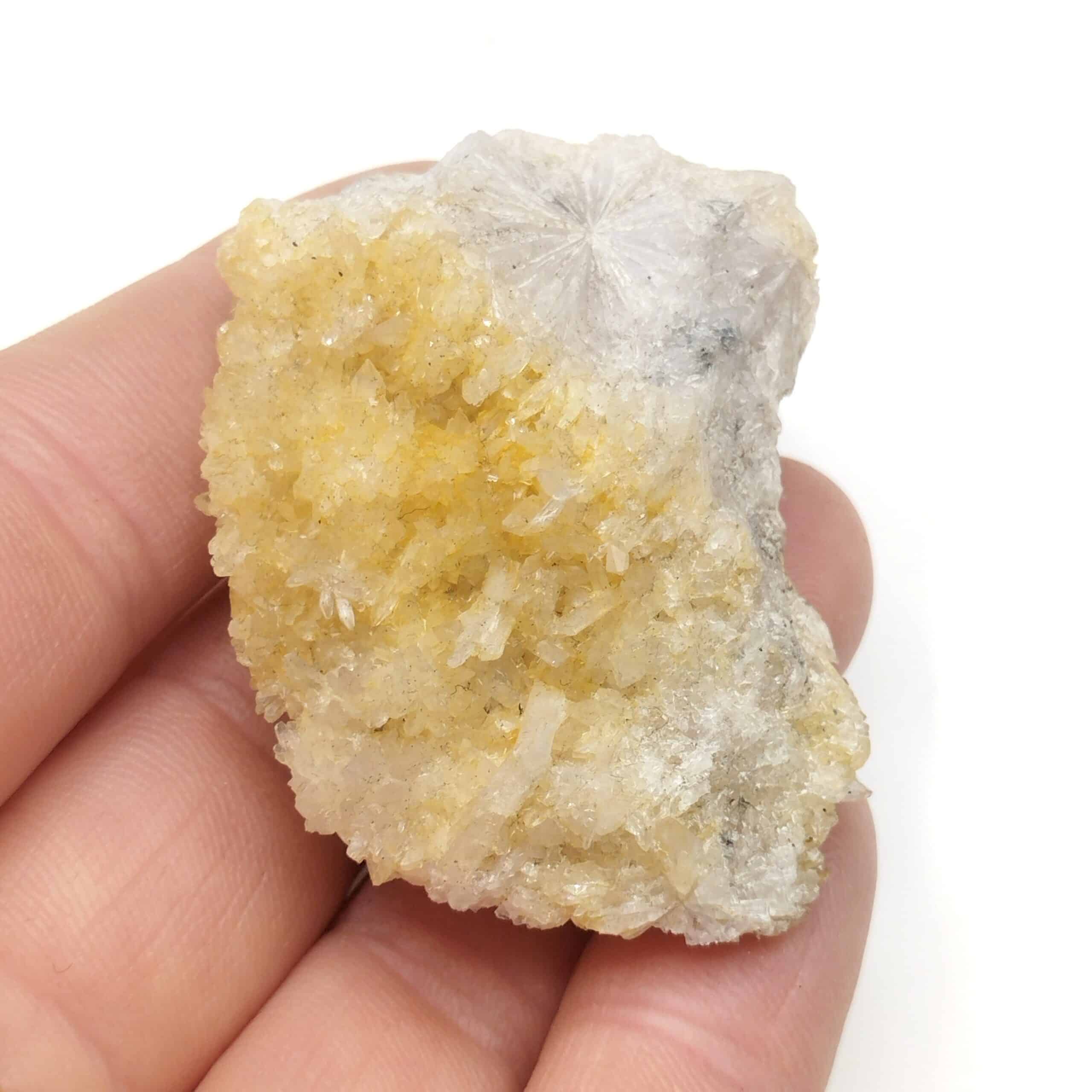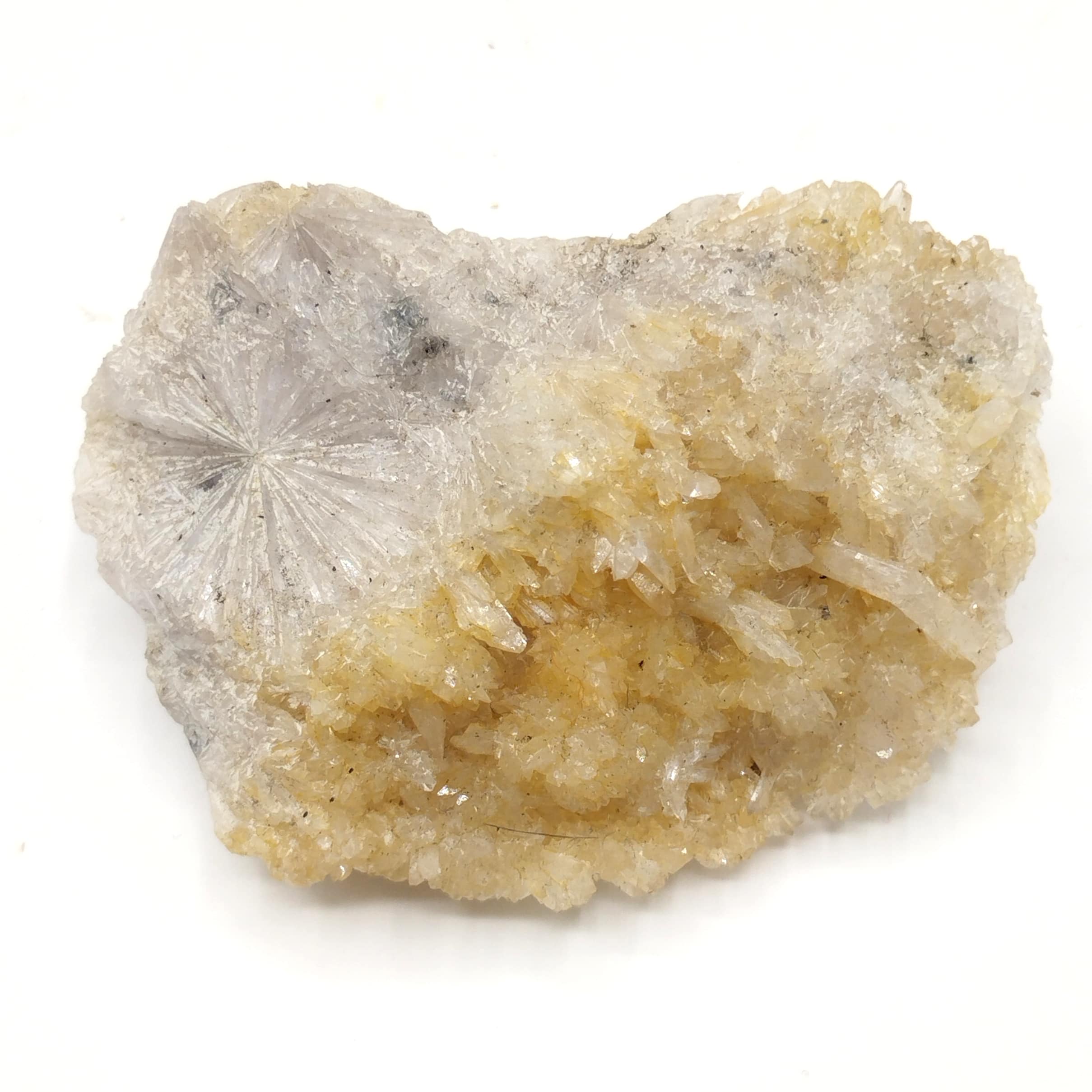 Cristaux de creedite radiés et terminés (jaunes) en provenance de la province de Santa Eulalia au Mexique.
