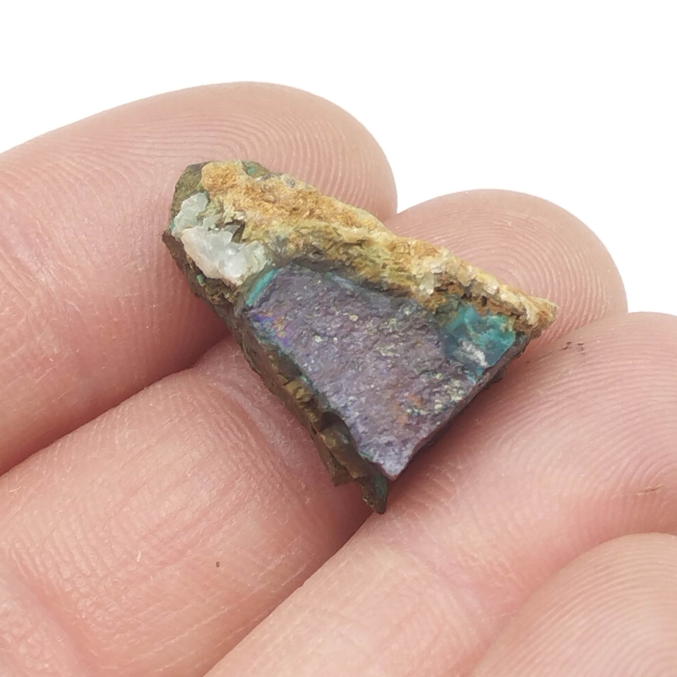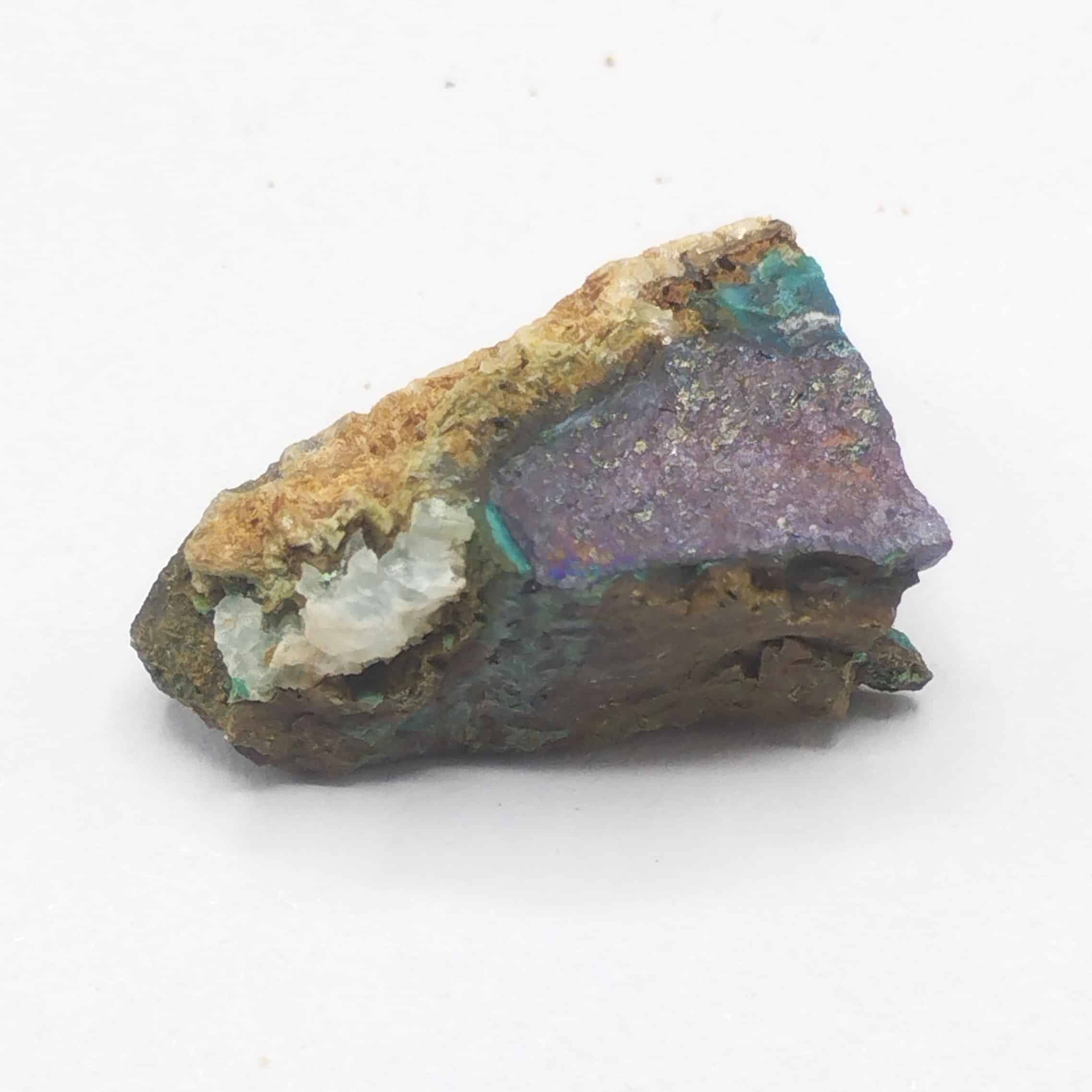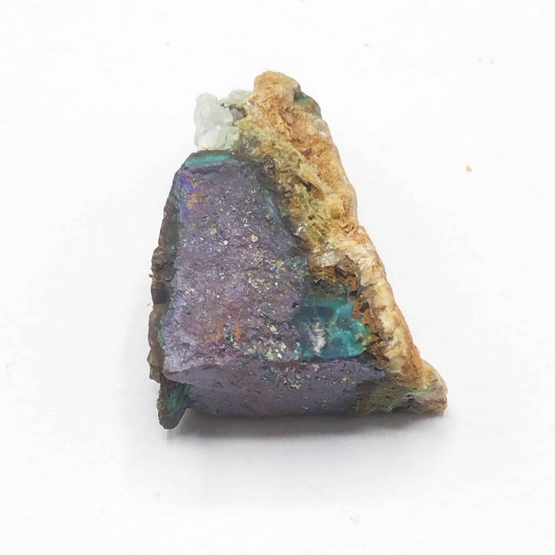Bons cristaux bleus verts de trippkeite sur cuprite en provenance des mines de la Clue de la Roua, à Daluis, dans le département des Alpes Maritimes.
