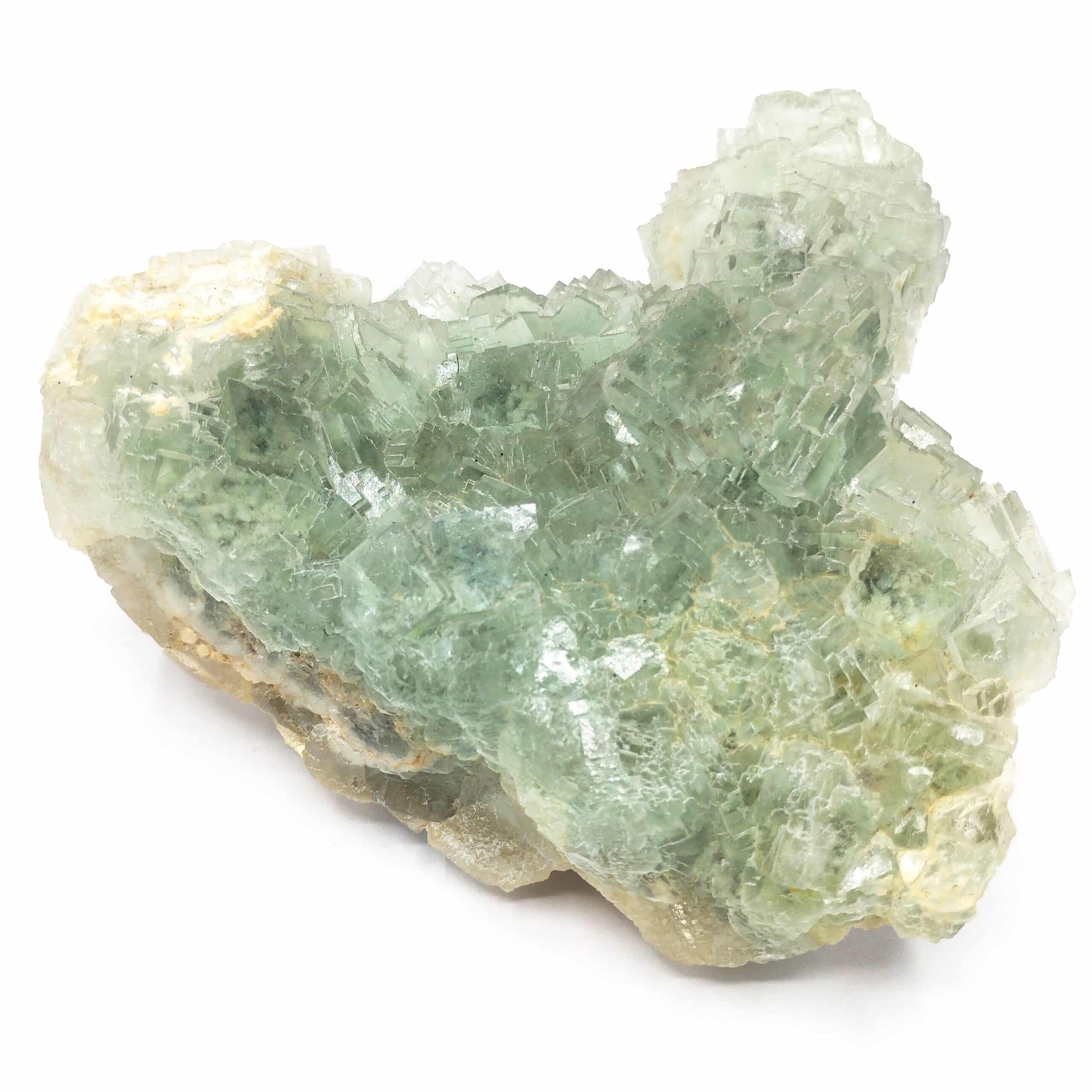 Grand groupe de cristaux de fluorite verte cubique en provenance de Chine.