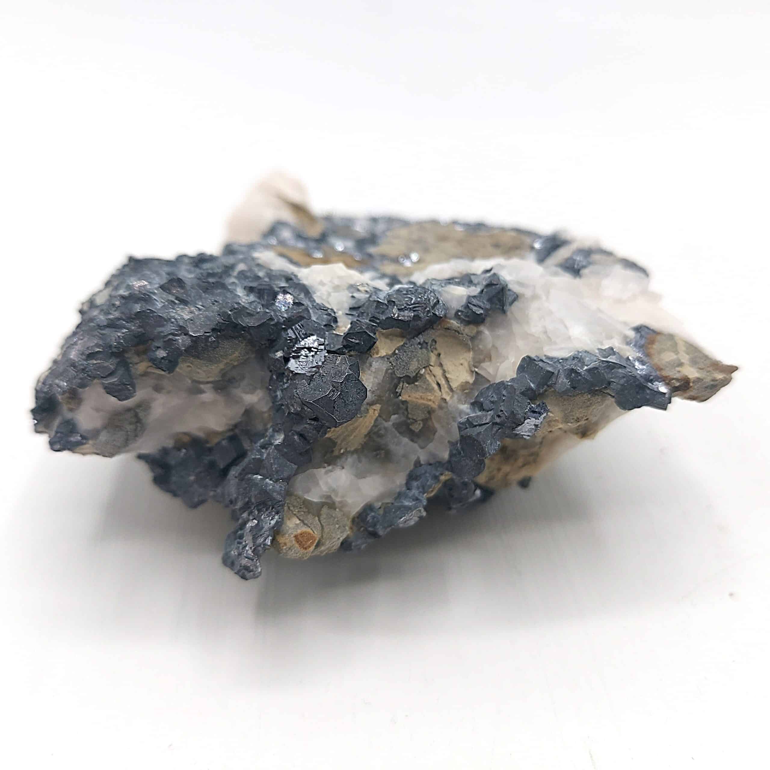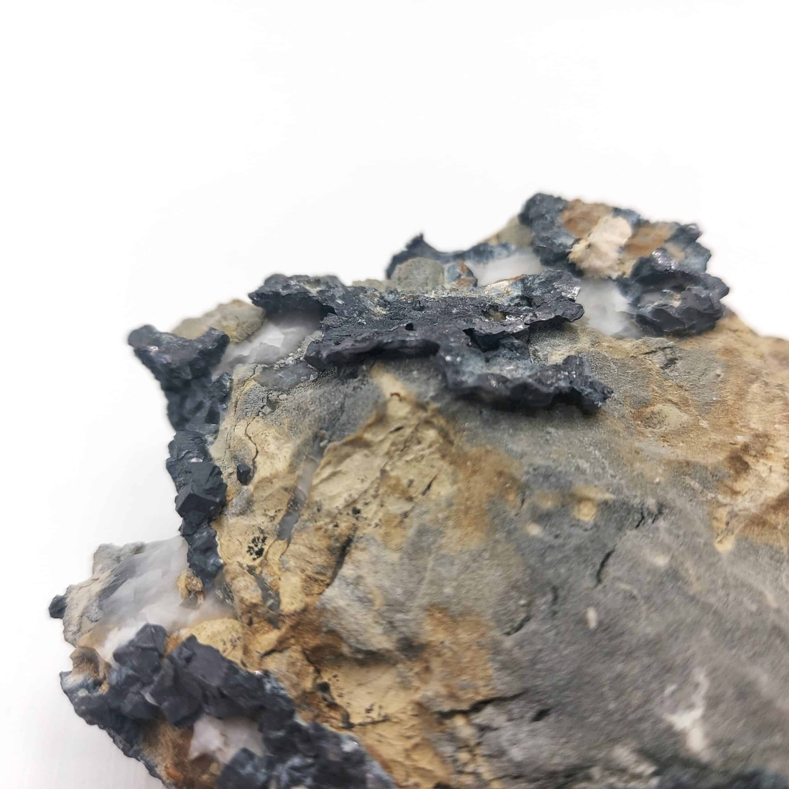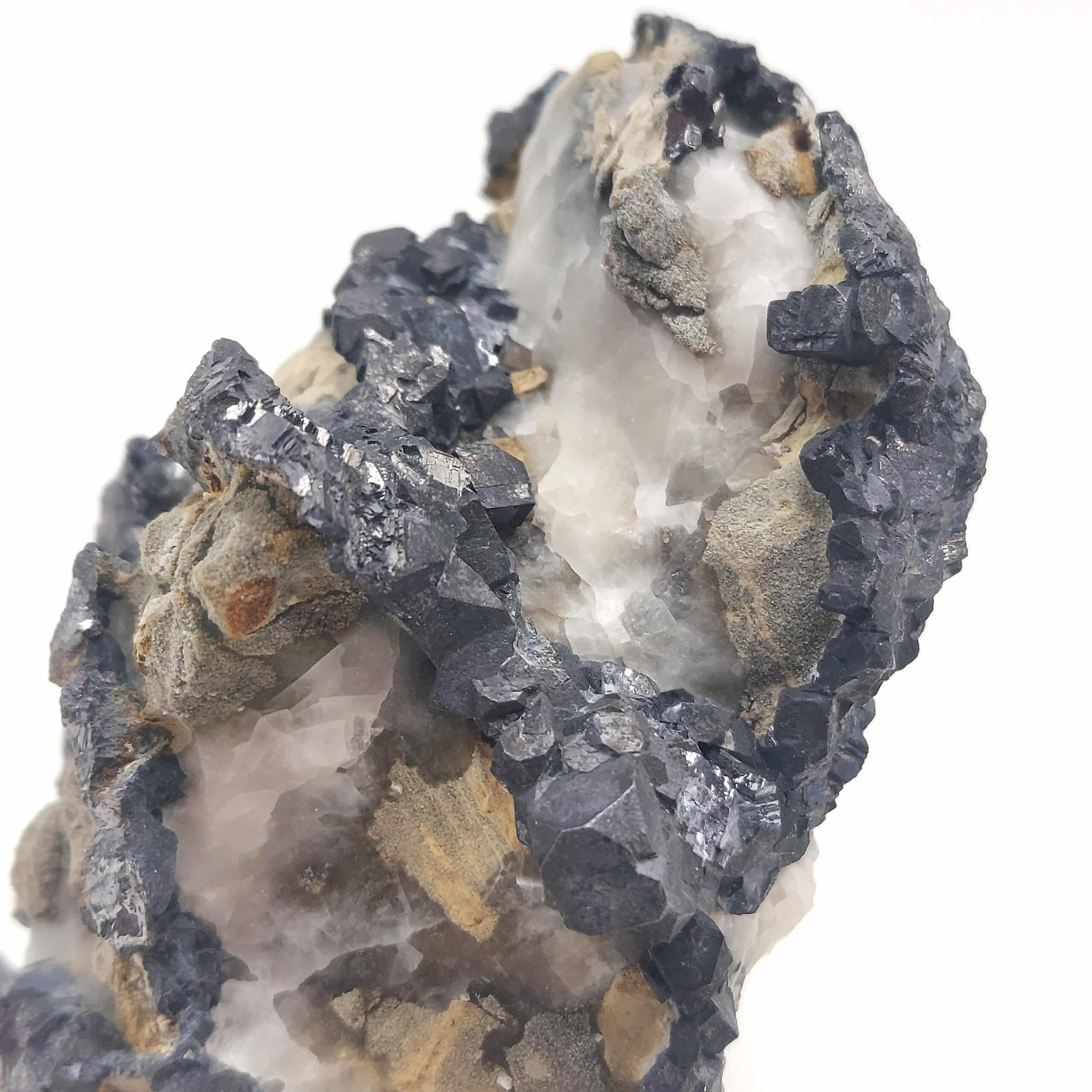 Galène partiellement cristallisée brillante incrustée dans sa gangue en provenance de la mine de La Vidale, Asprières, Aveyron.