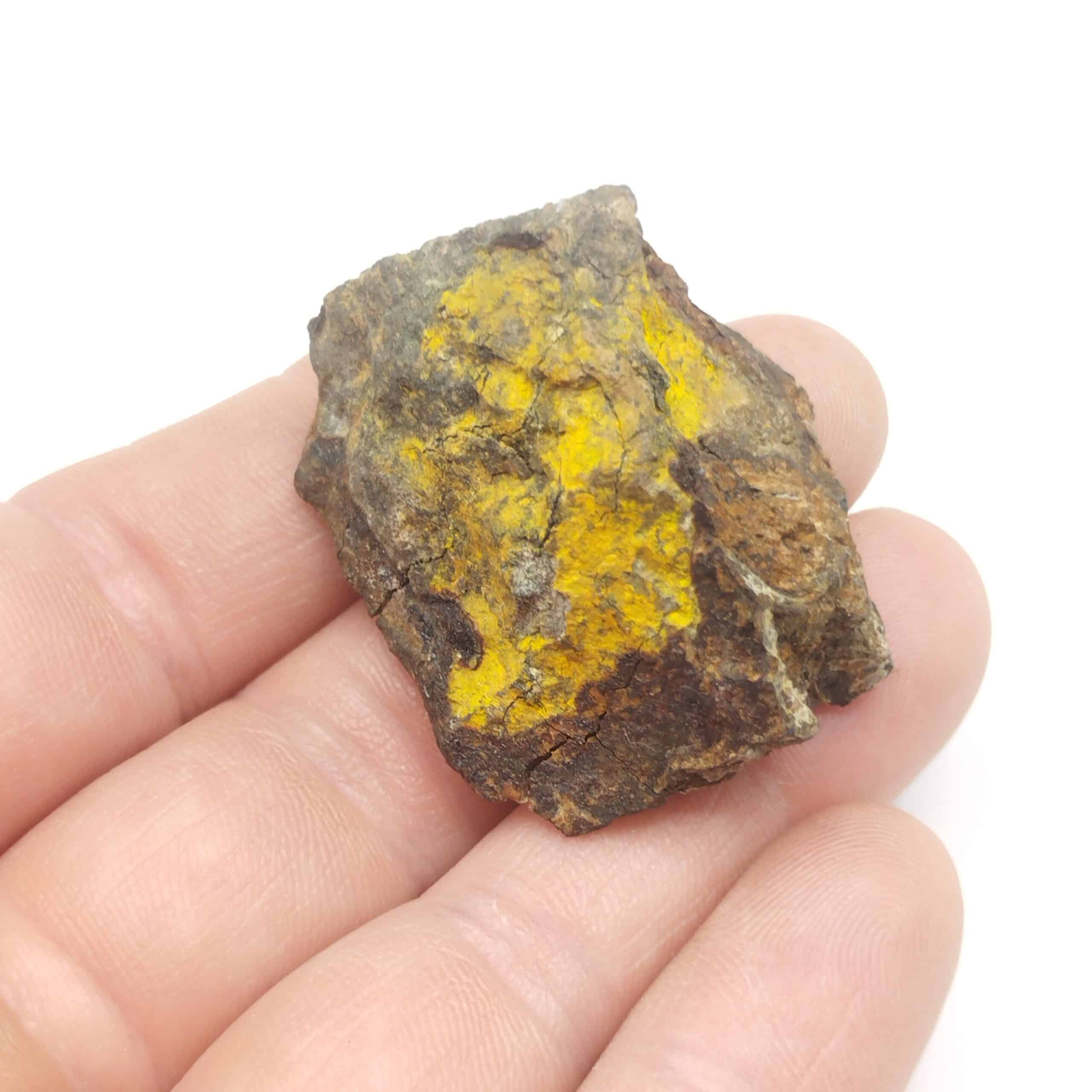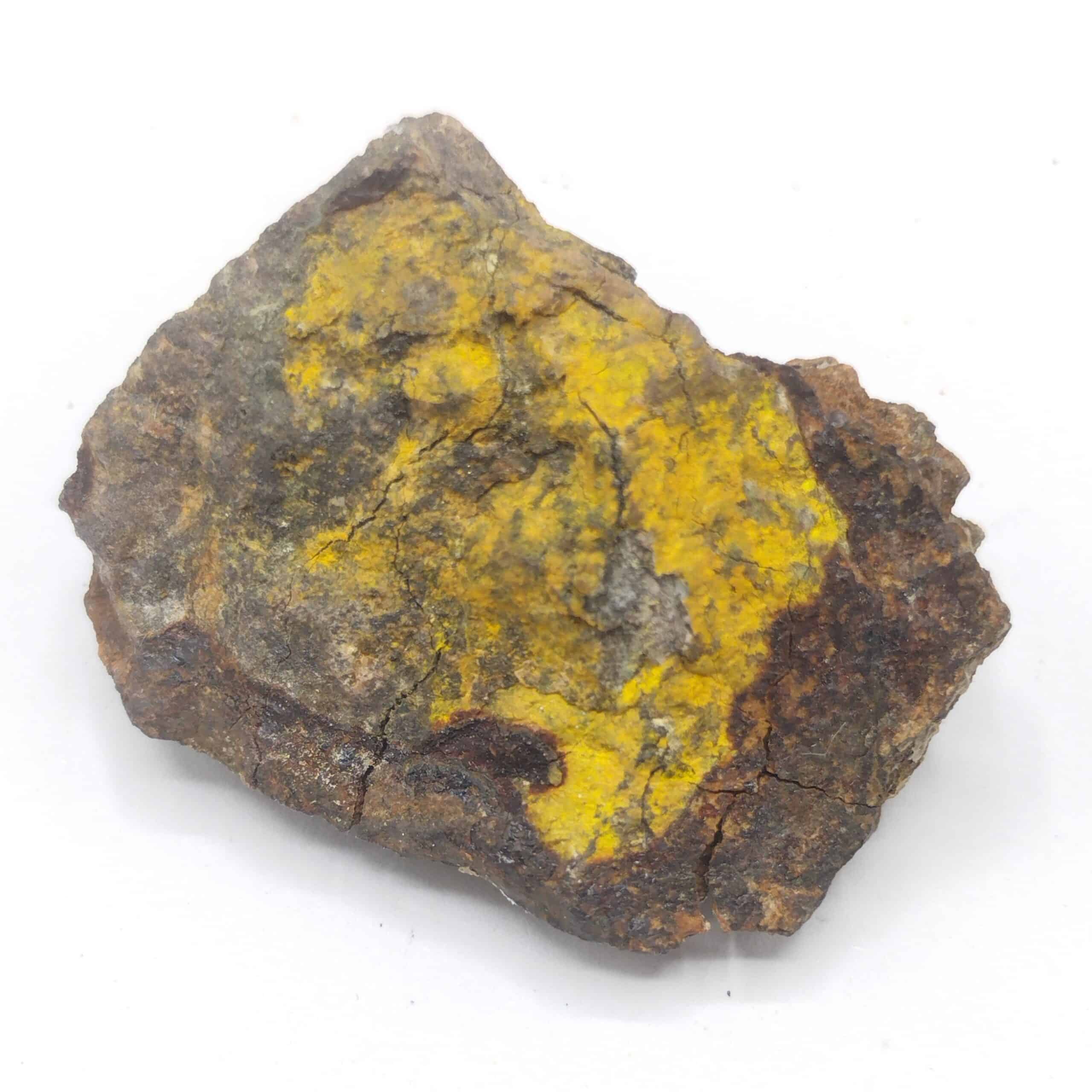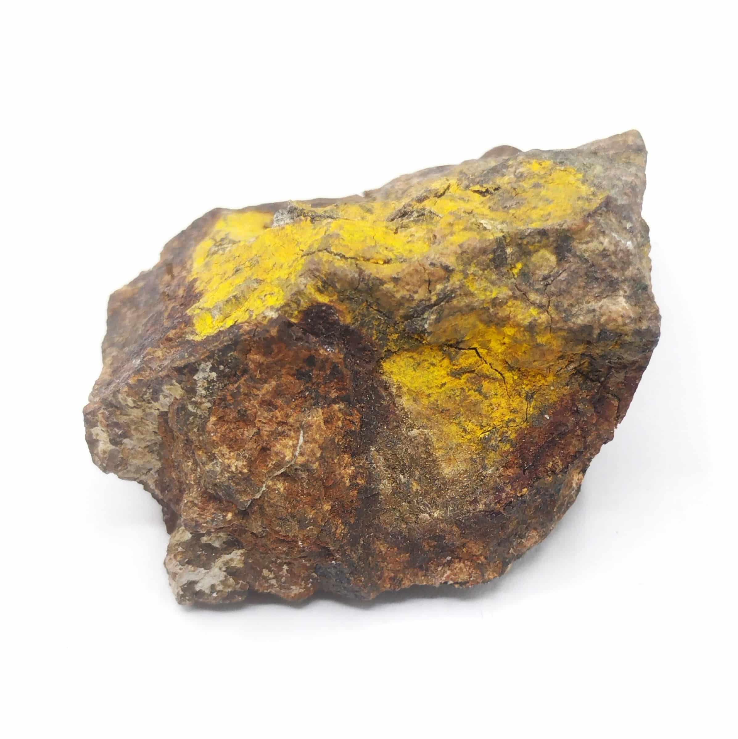 Plaquage de très fins cristaux jaunes de greenockite sur sphalérite massive.