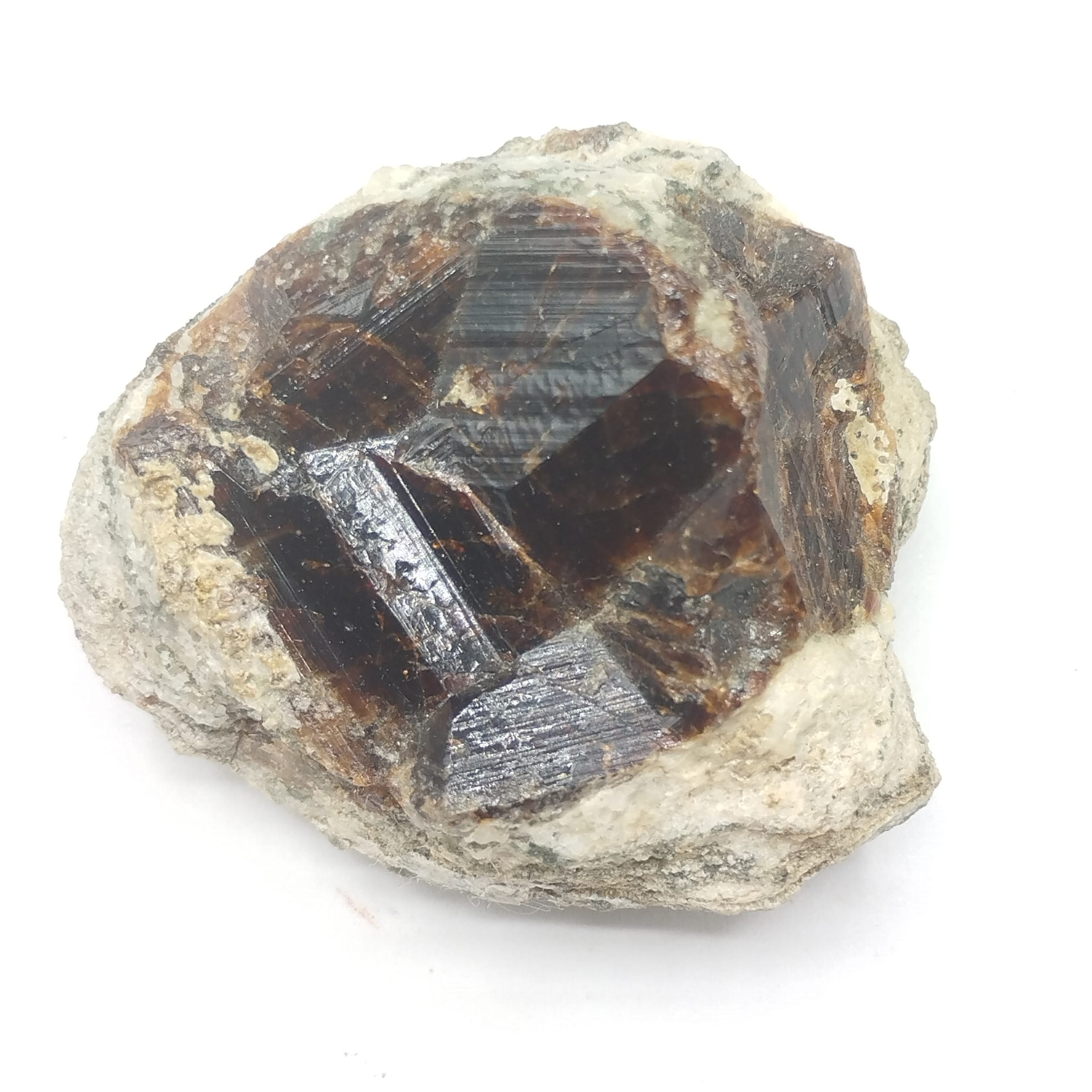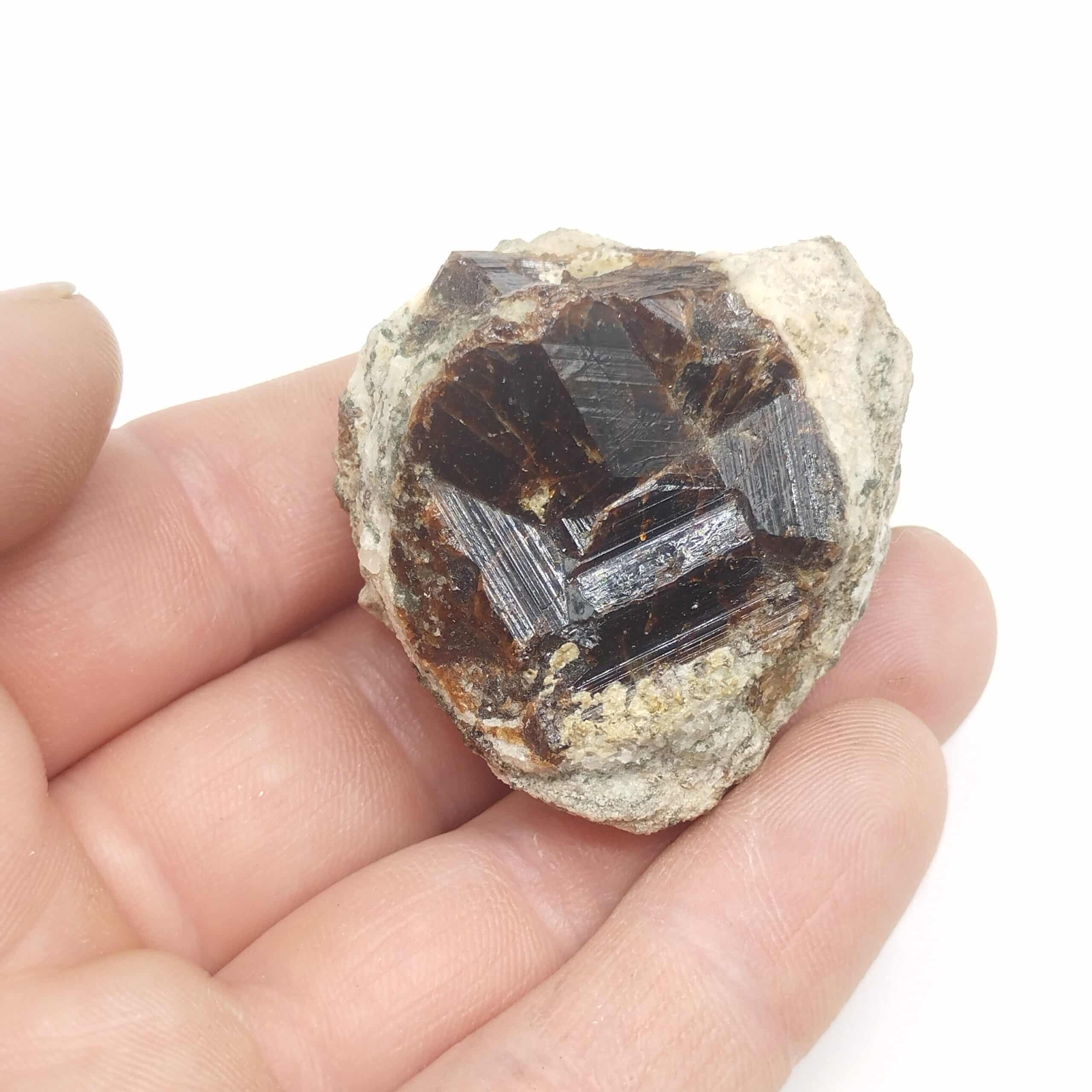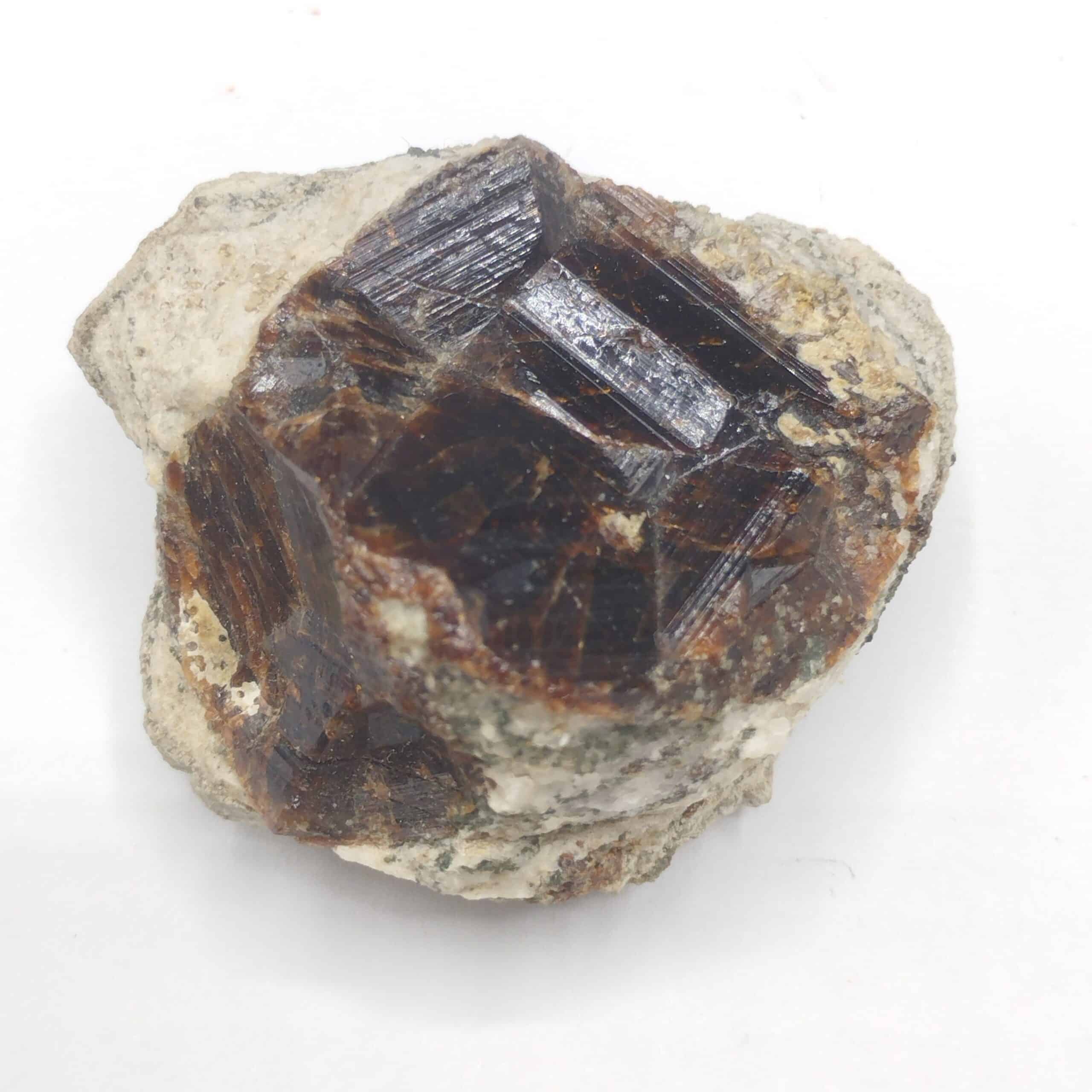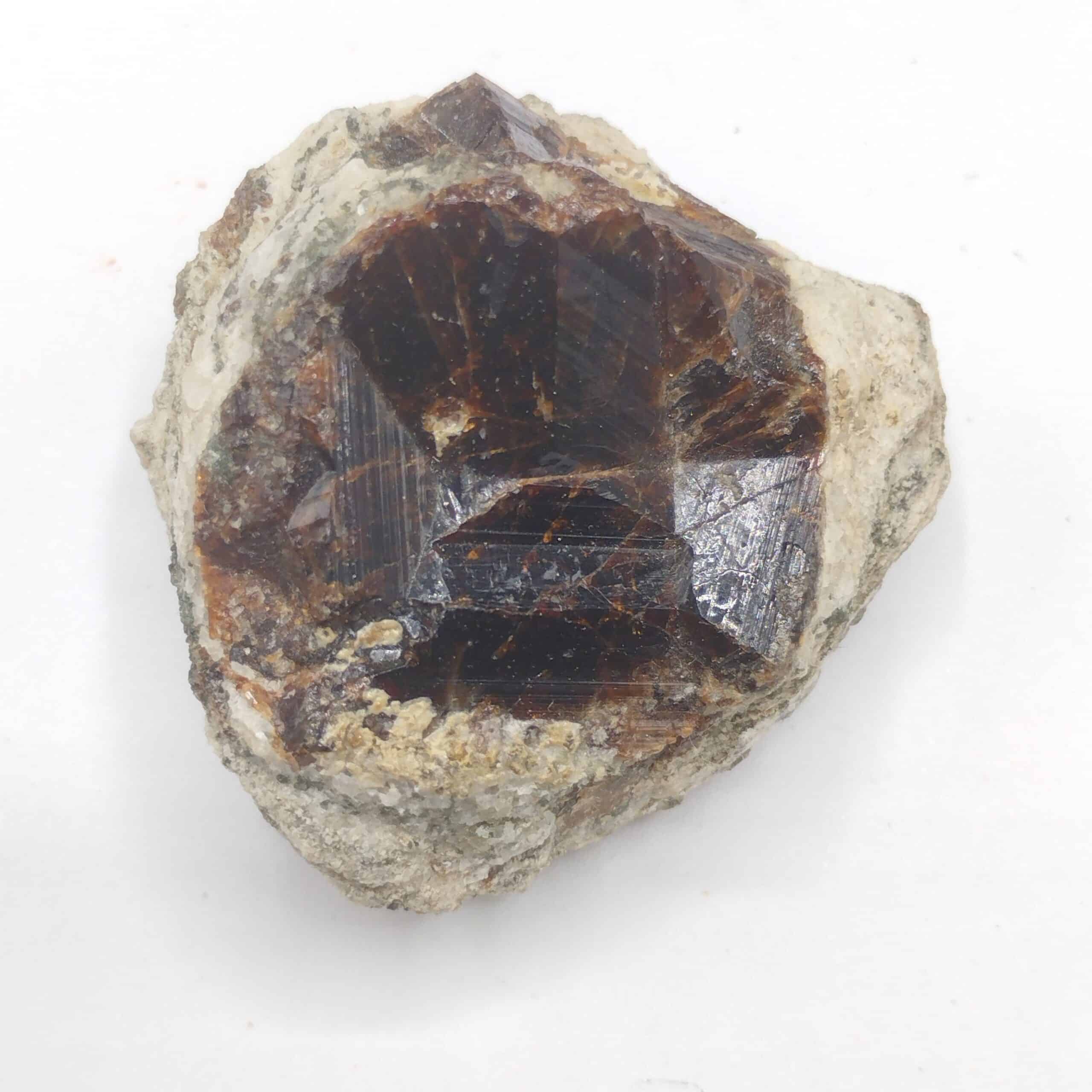 Grand cristal de grenat grossulaire à faciès cristallin en creux en provenance du massif du Quérigut dans le département de l’Ariège.
