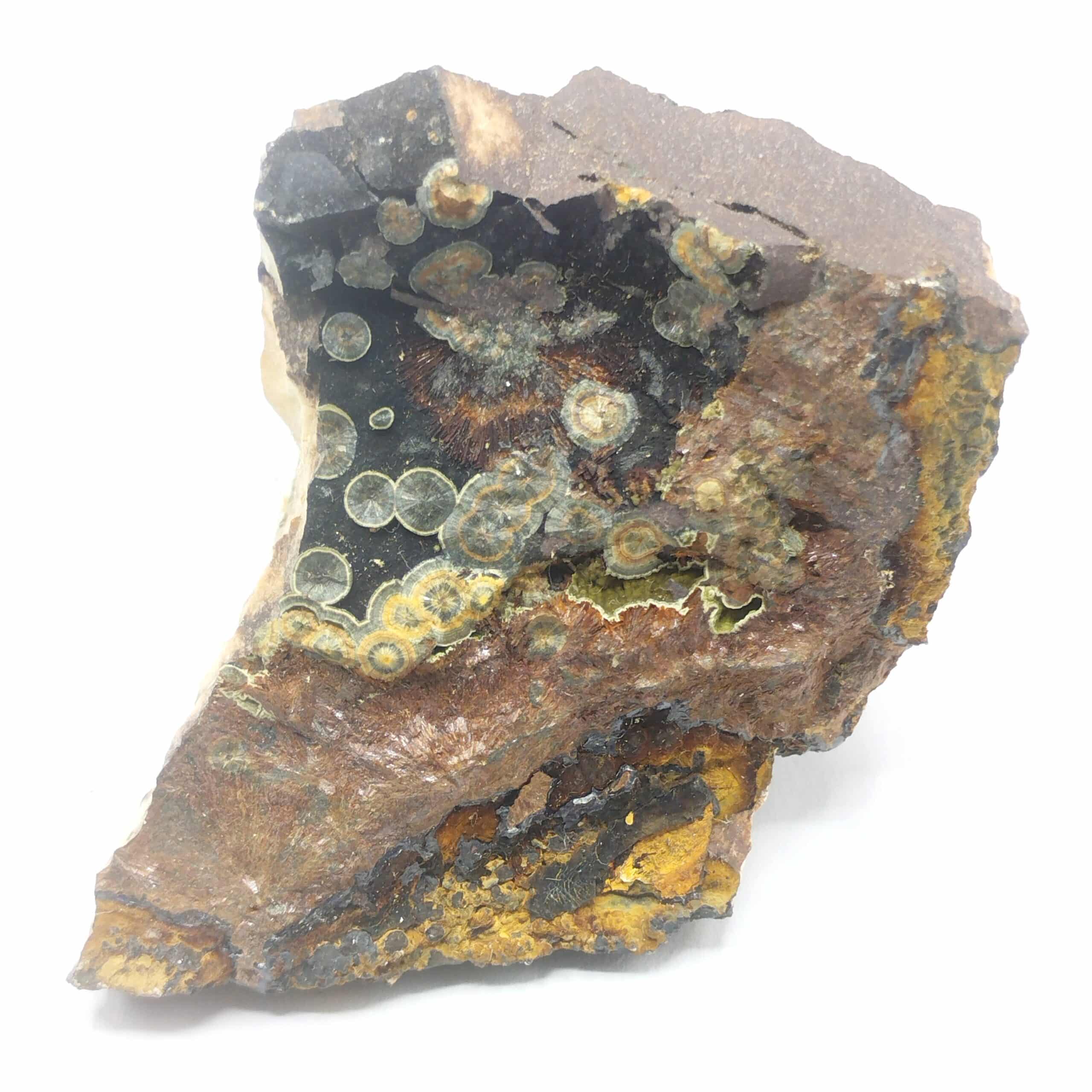 Cristaux radiés de kidwellite en association avec de la goethite en provenance des montagnes Fodderstack à Montgomery dans l’Arkansas aux États-Unis.