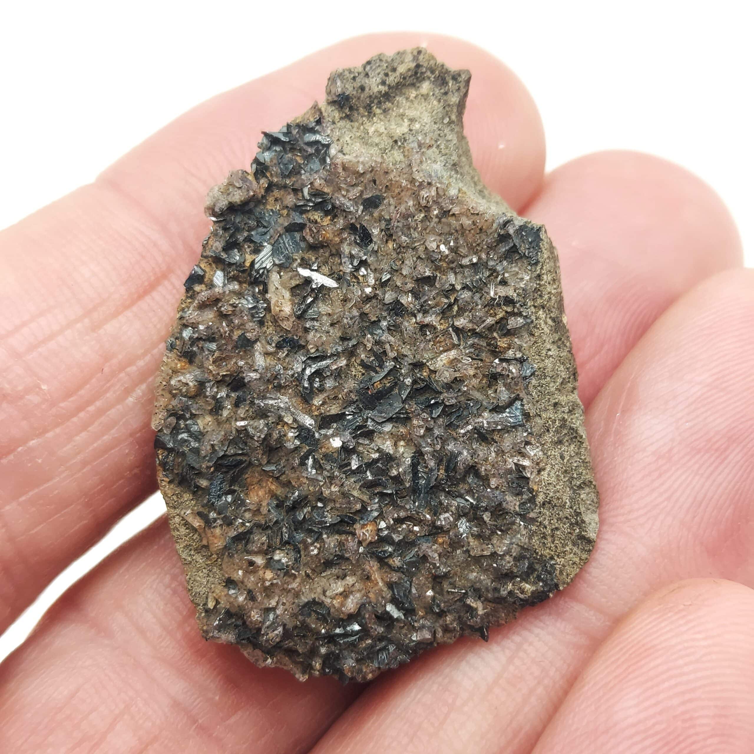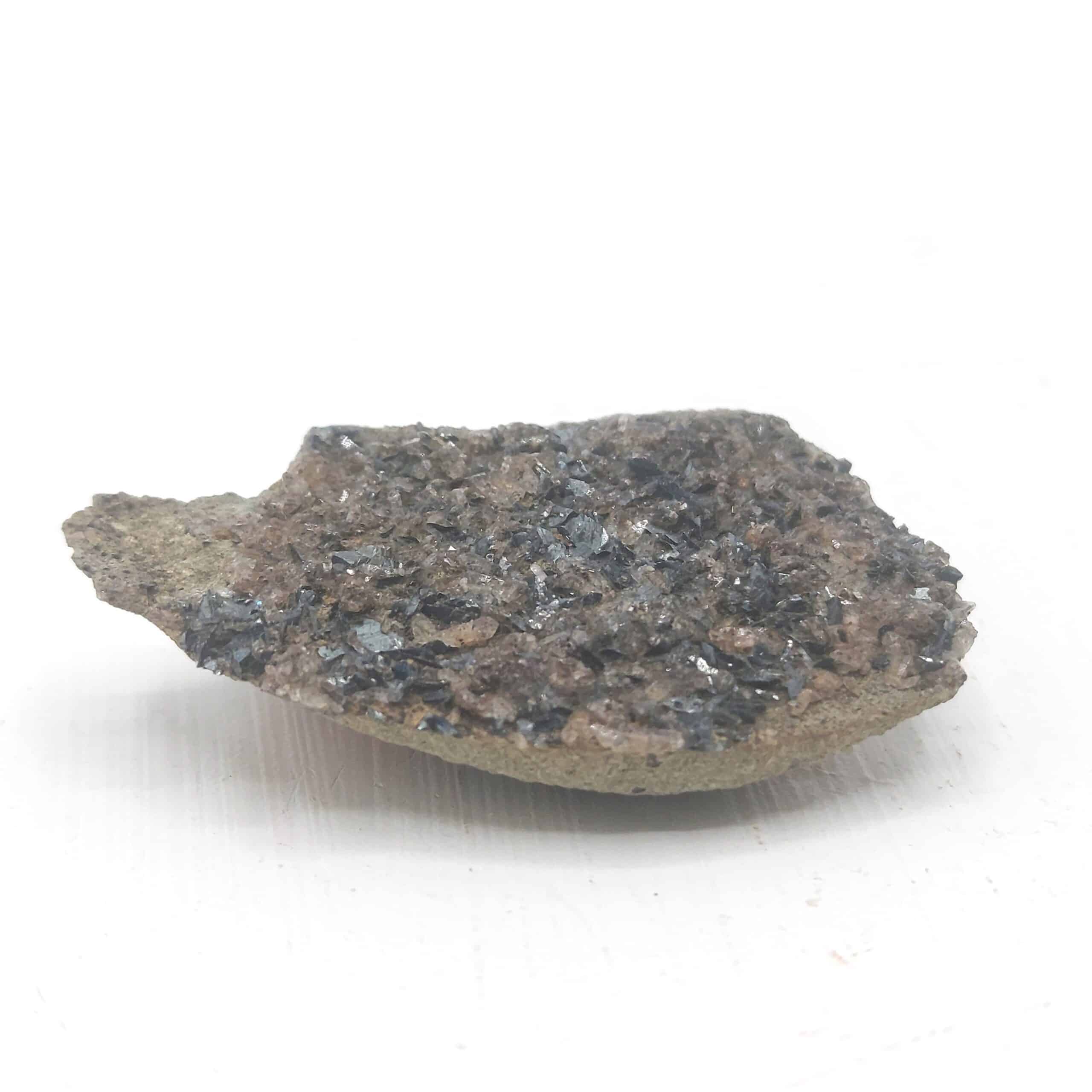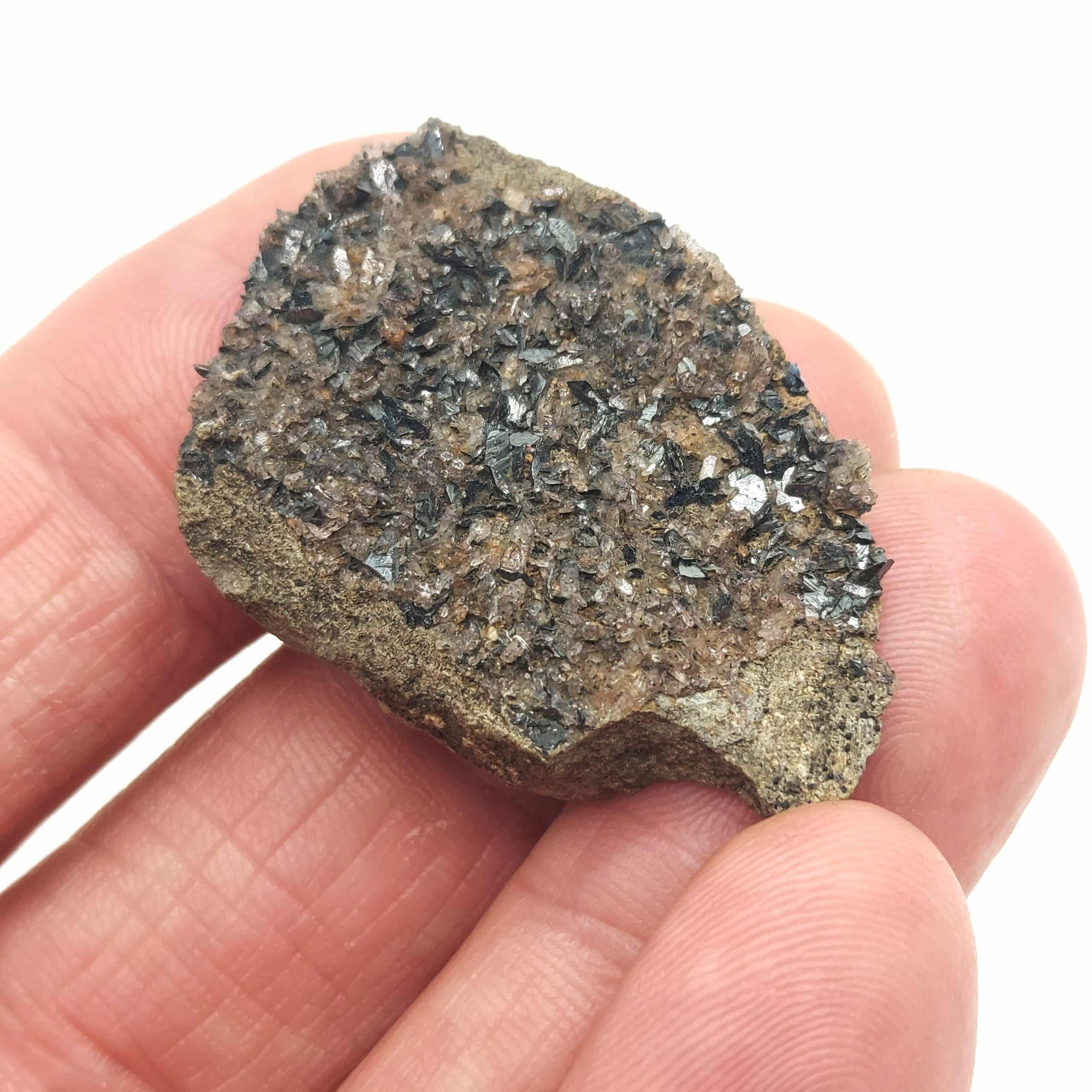 “Fer oligiste en lames héxagonales avec quartz dans un grés altéré.” En provenance de Framont dans les Vosges. Livré avec une belle étiquette manuscrite de la collection Eloffe.