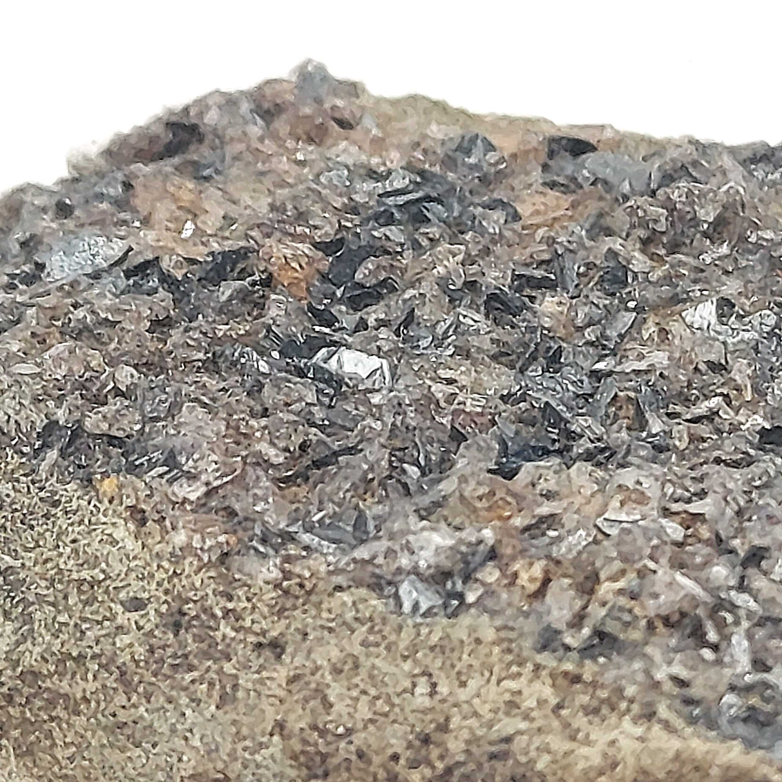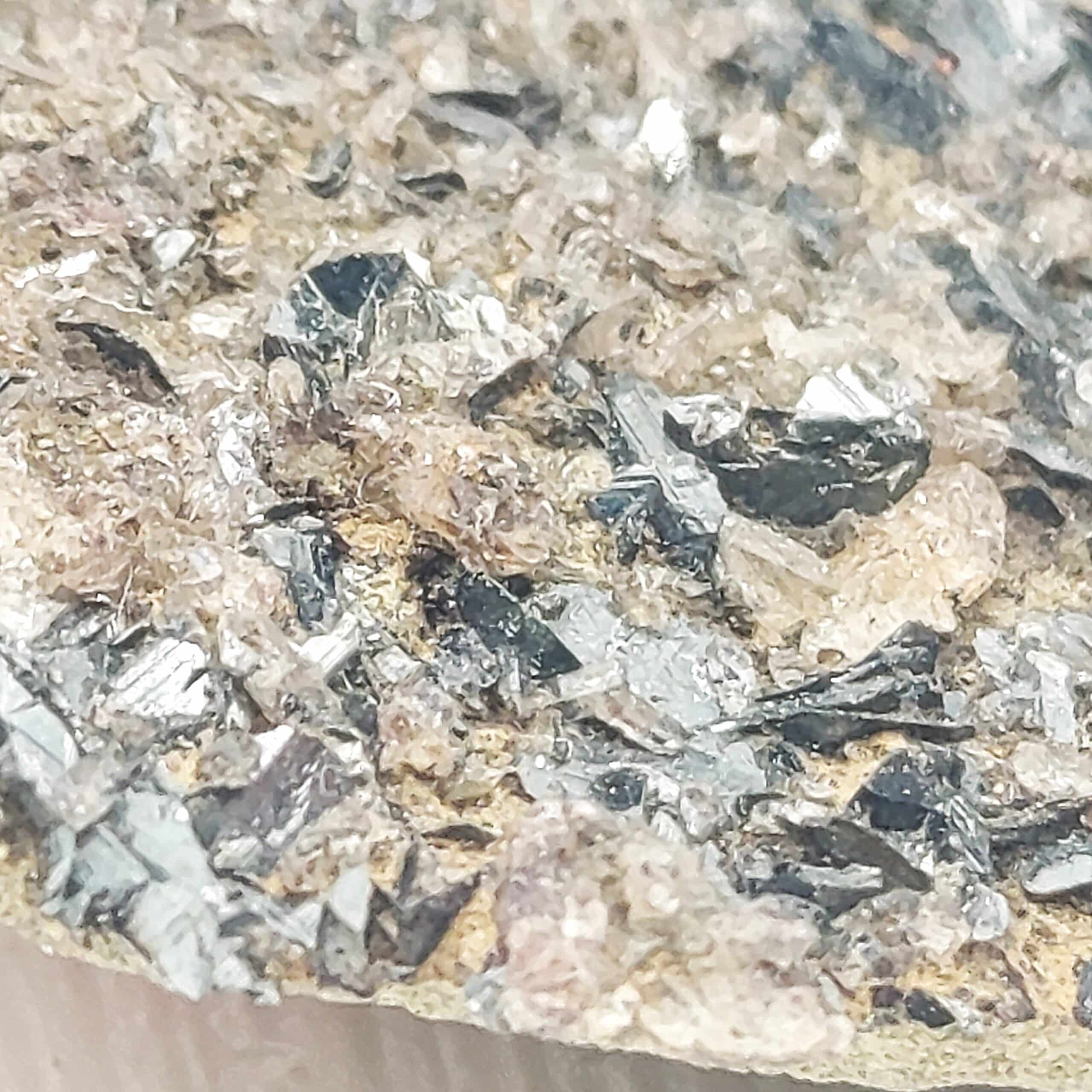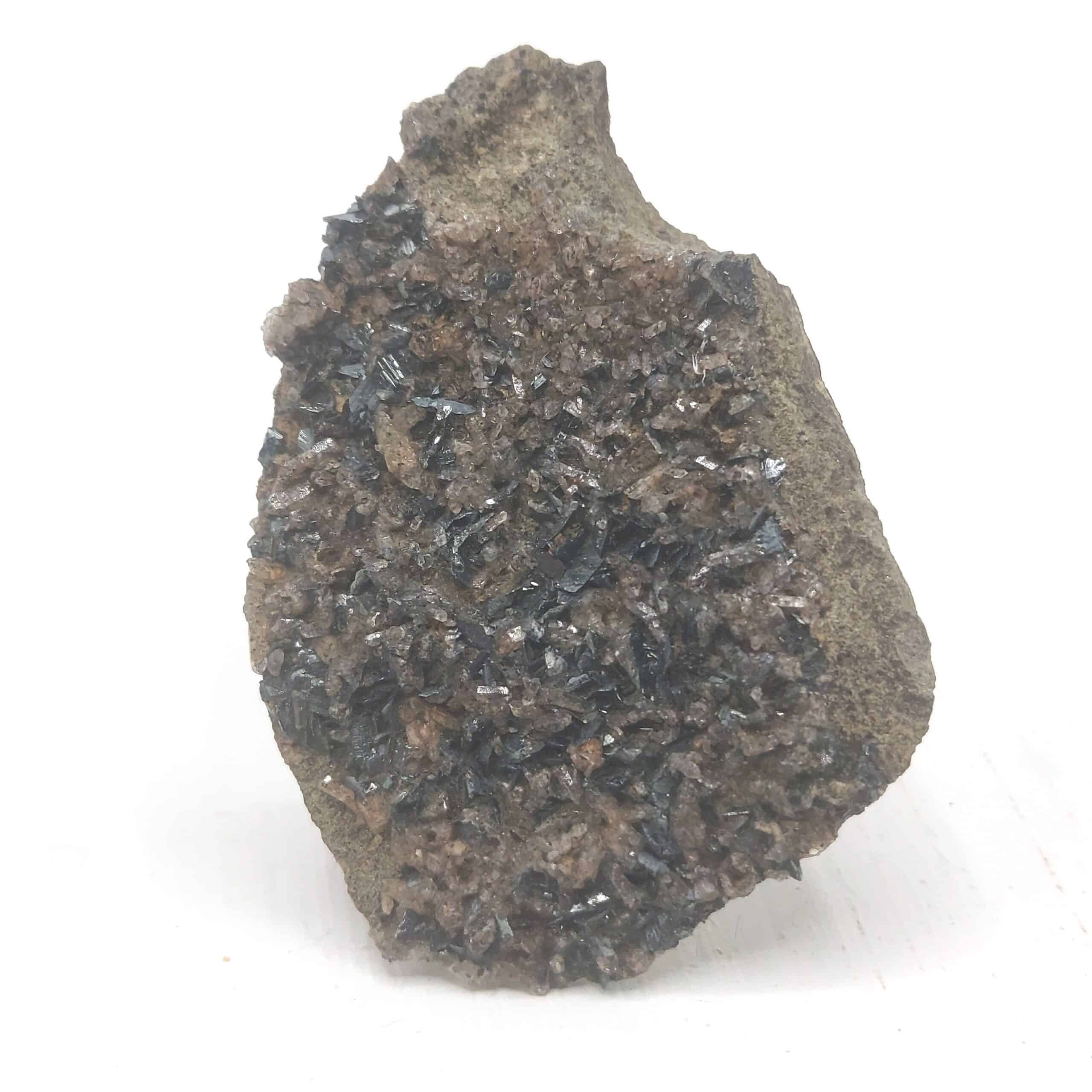 “Fer oligiste en lames héxagonales avec quartz dans un grés altéré.” En provenance de Framont dans les Vosges. Livré avec une belle étiquette manuscrite de la collection Eloffe.