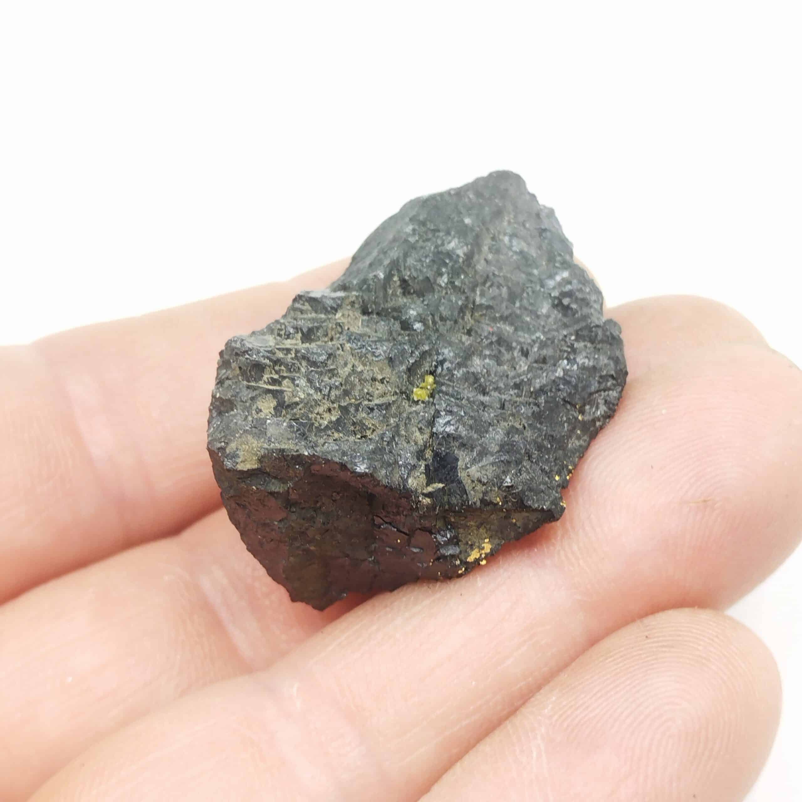 Quelques cristaux jaunes viennent compléter l’ensemble, probablement de la becquerelite.