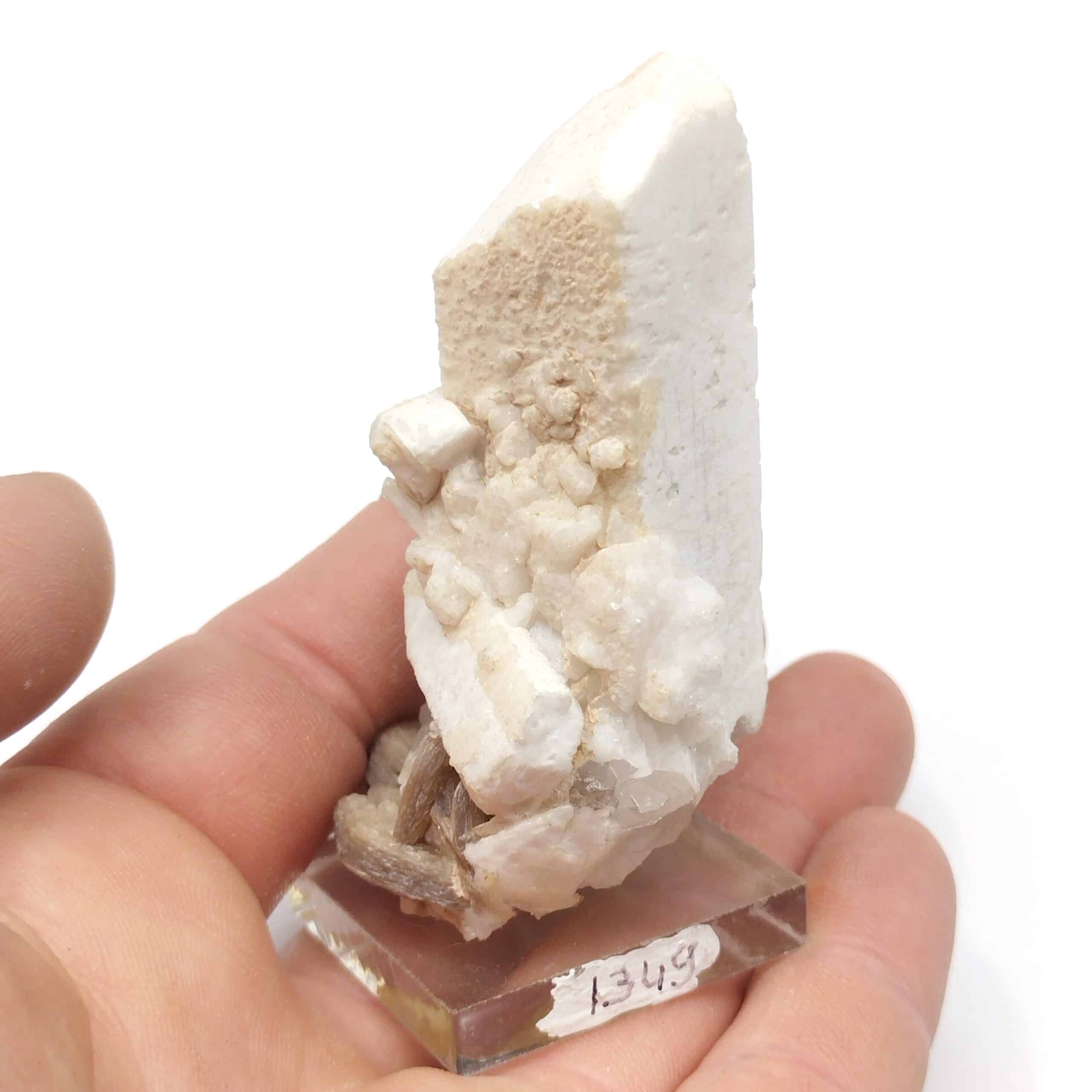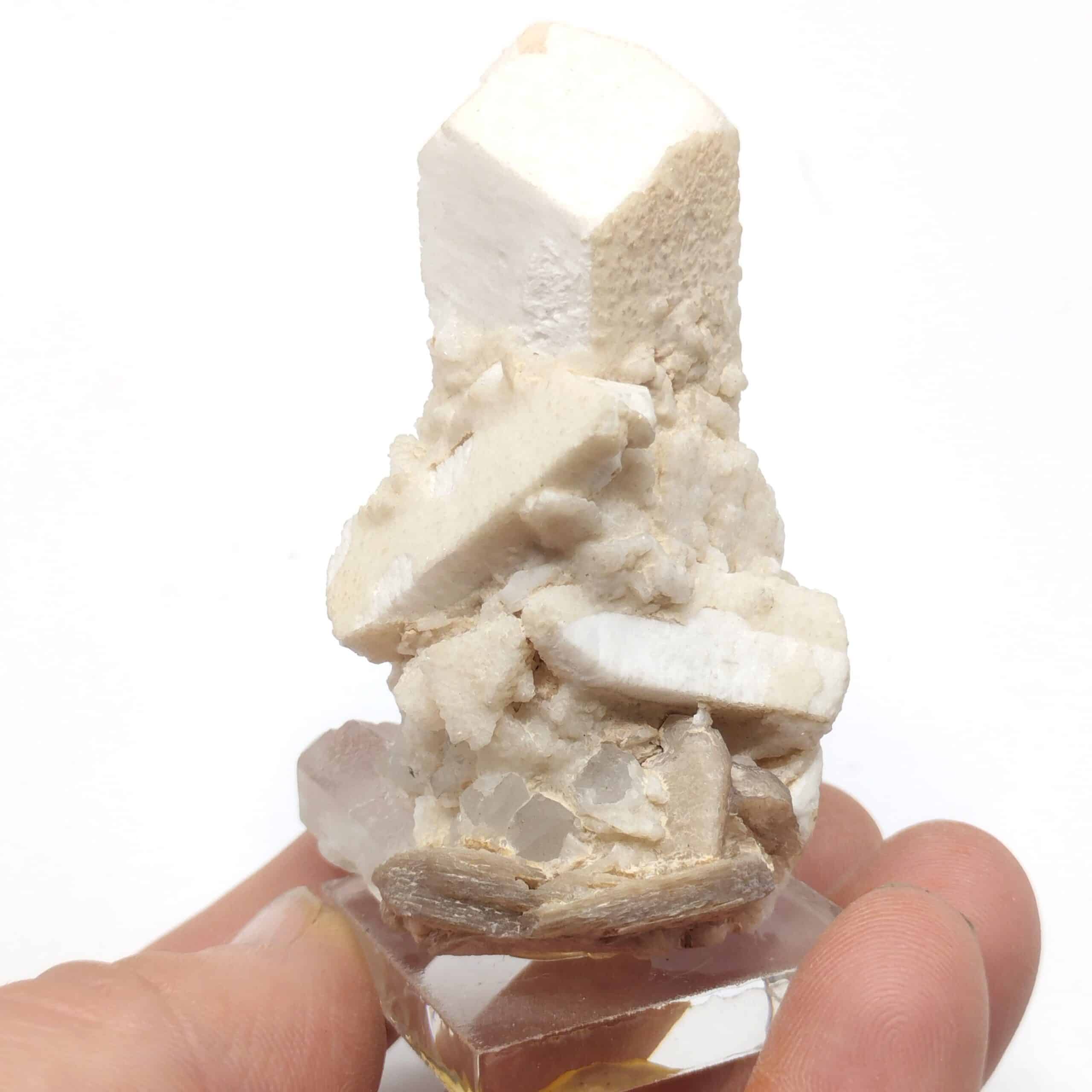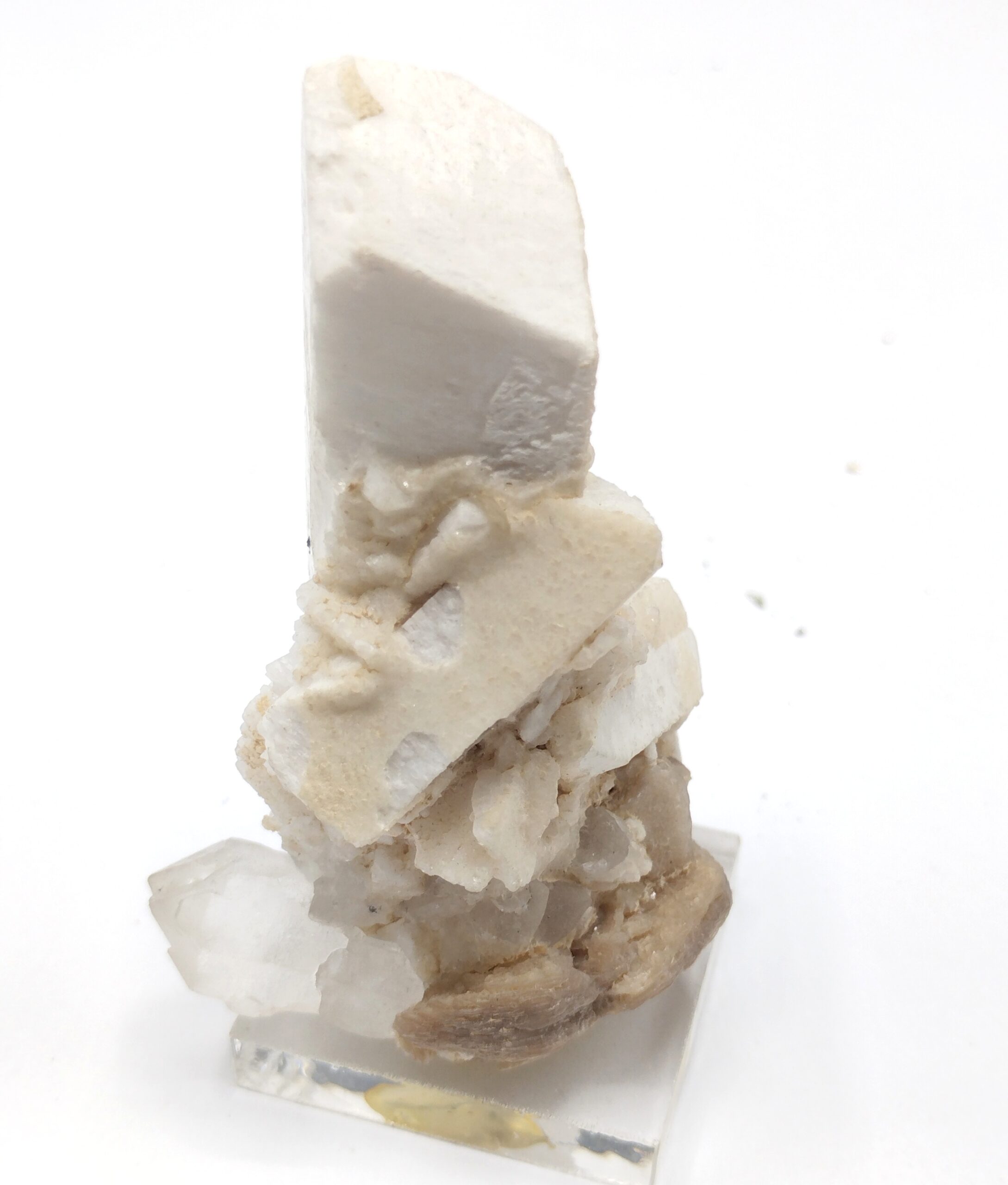 Grand cristal d’orthose d’une belle couleur blanche en association avec muscovite et quartz, en provenance de Raikot au Pakistan.