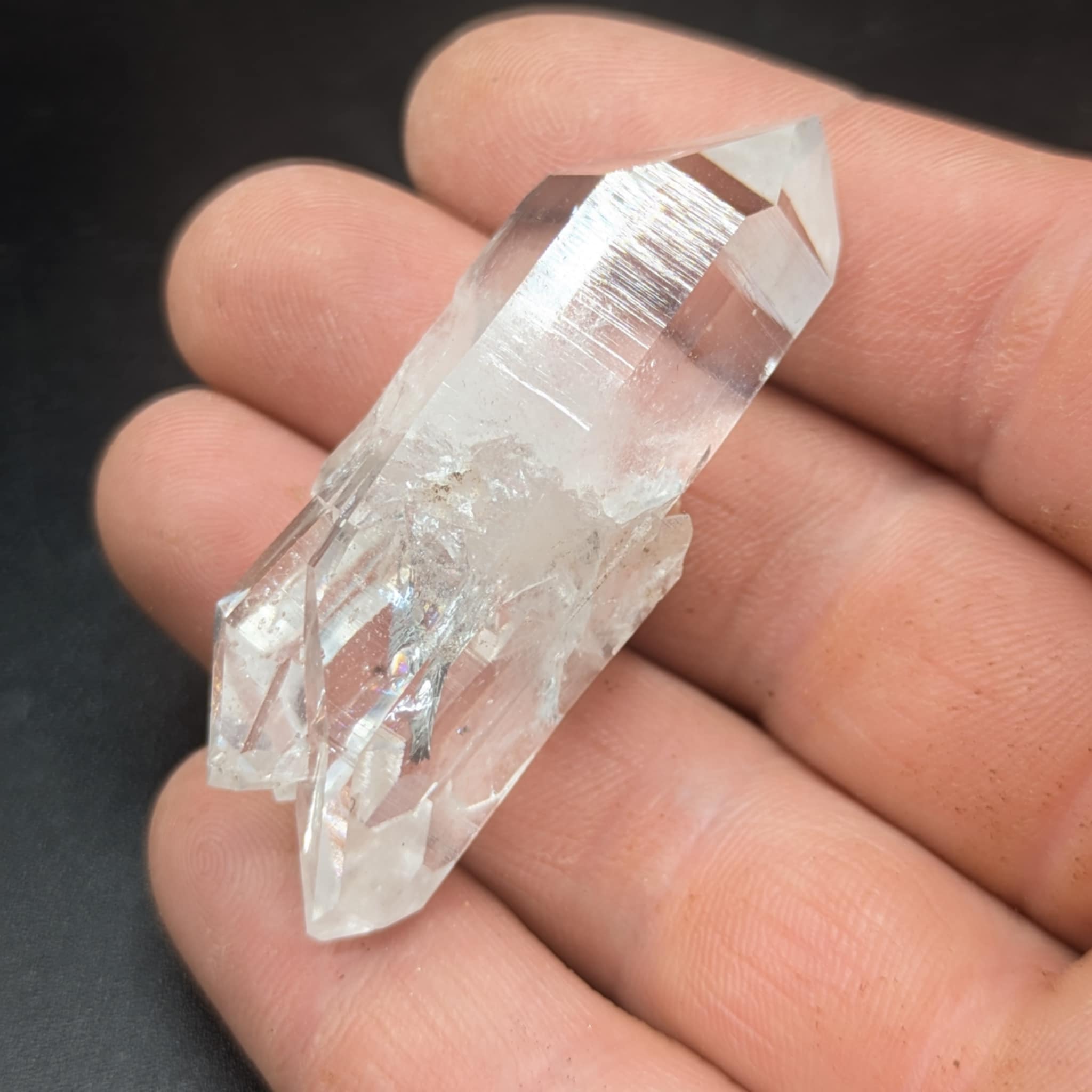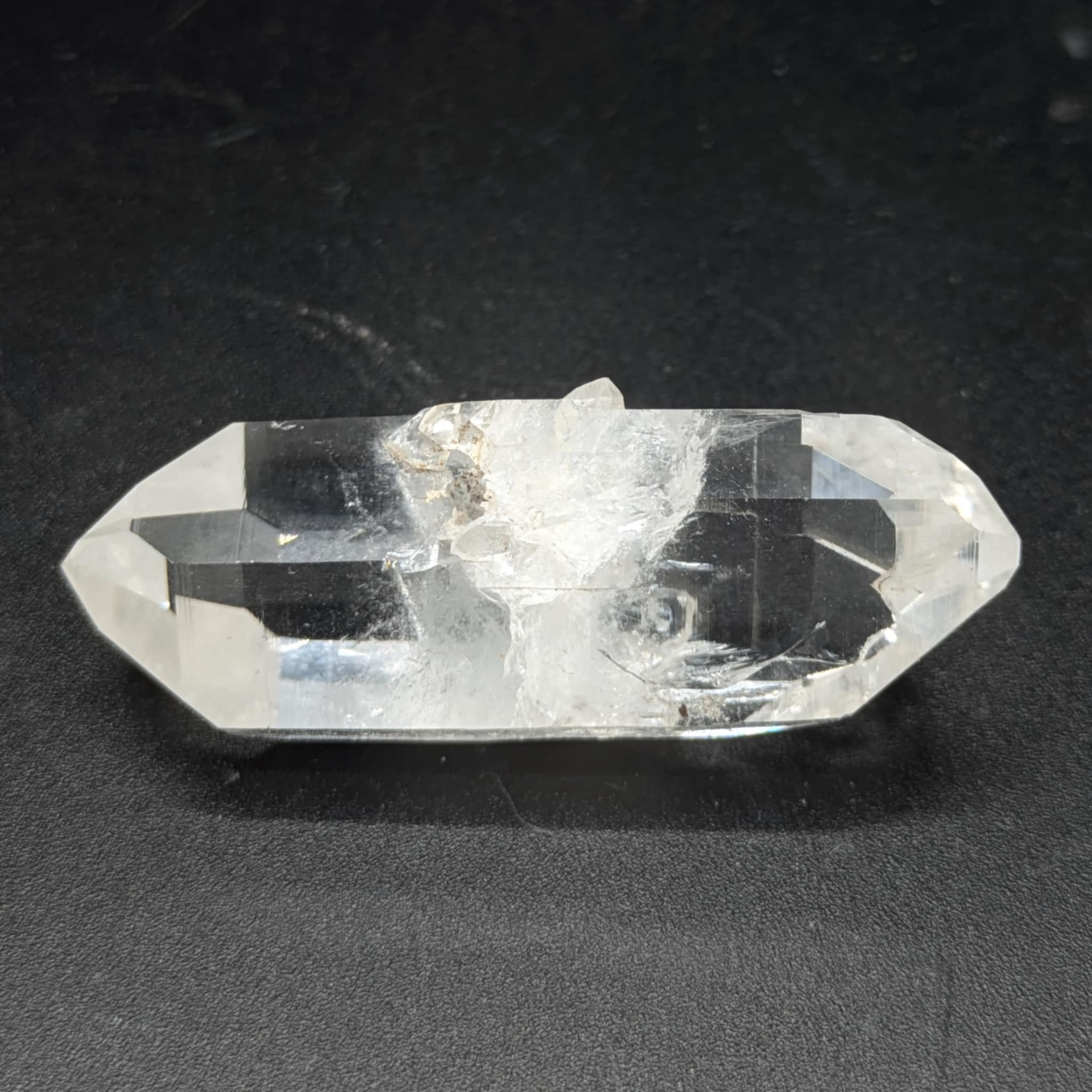 Superbe cristal de quartz à âme hyalin et biterminé en provenance de la montagne du Grand Chatelard dans la vallée de la Maurienne, département de la Savoie.
