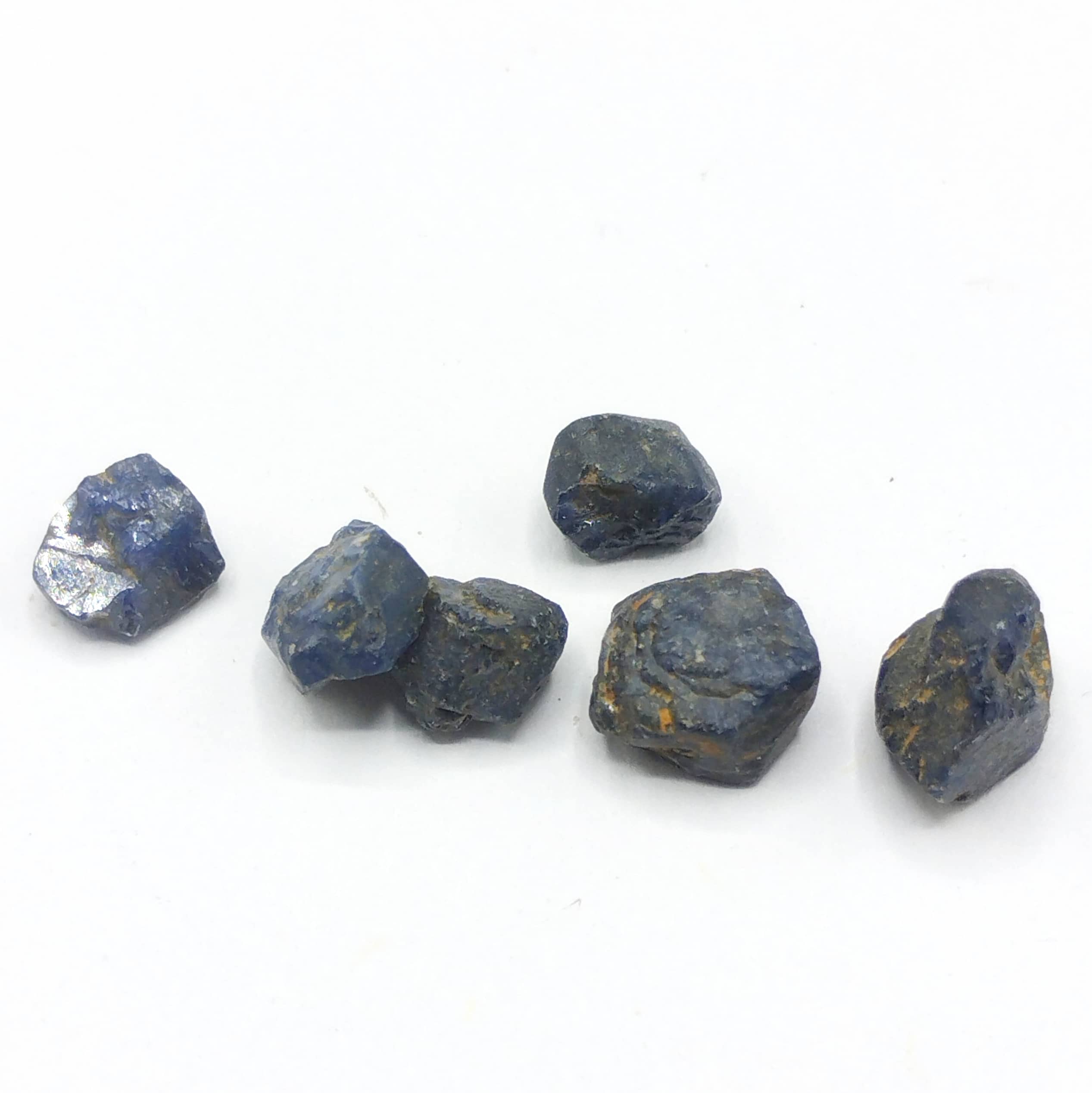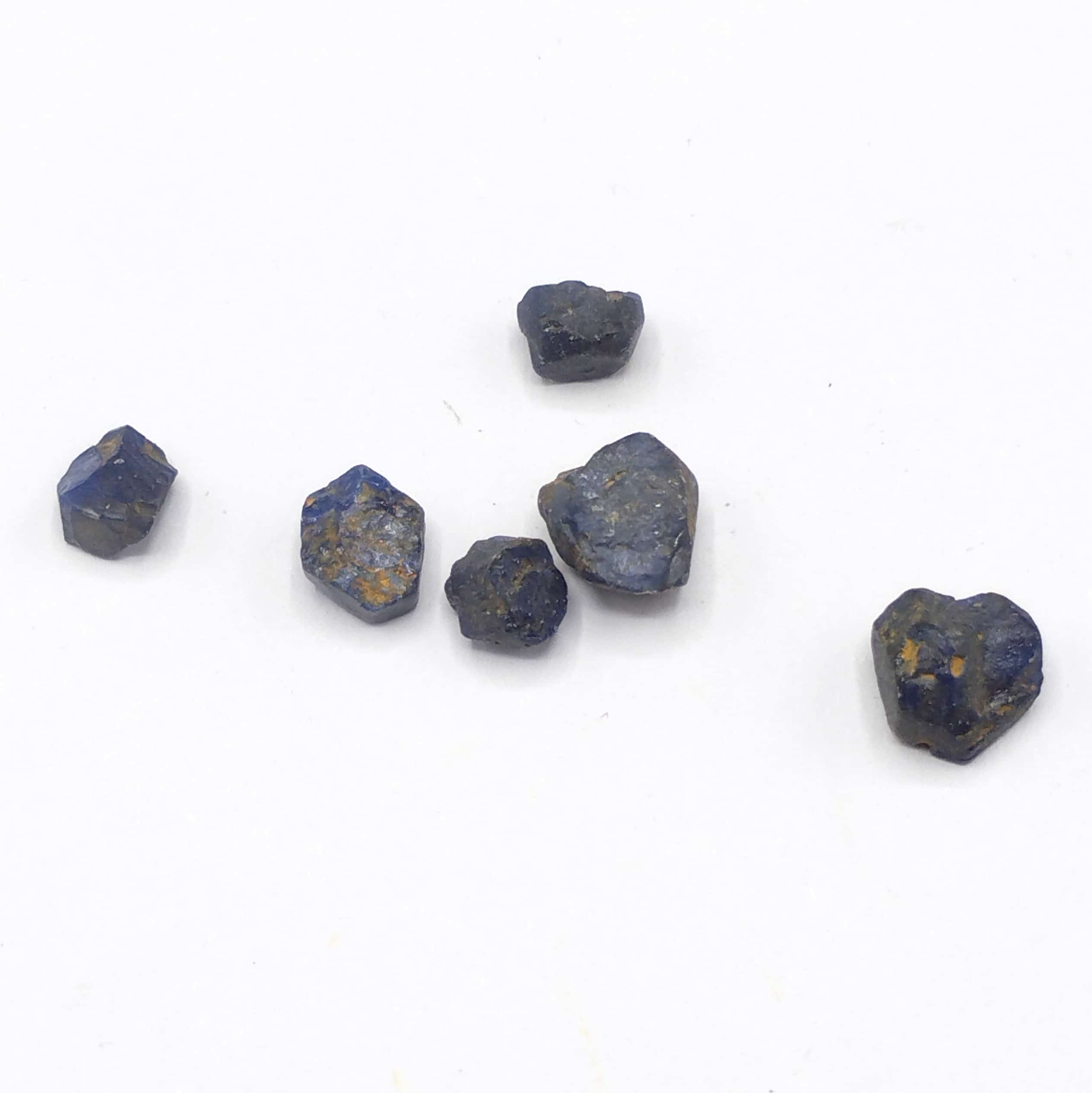 Lot de 6 cristaux de saphir (la variété bleue du corindon) d’une remarquable couleur bleue en provenance de la région de Salukwango, en province de Kivu, au Congo RDC.