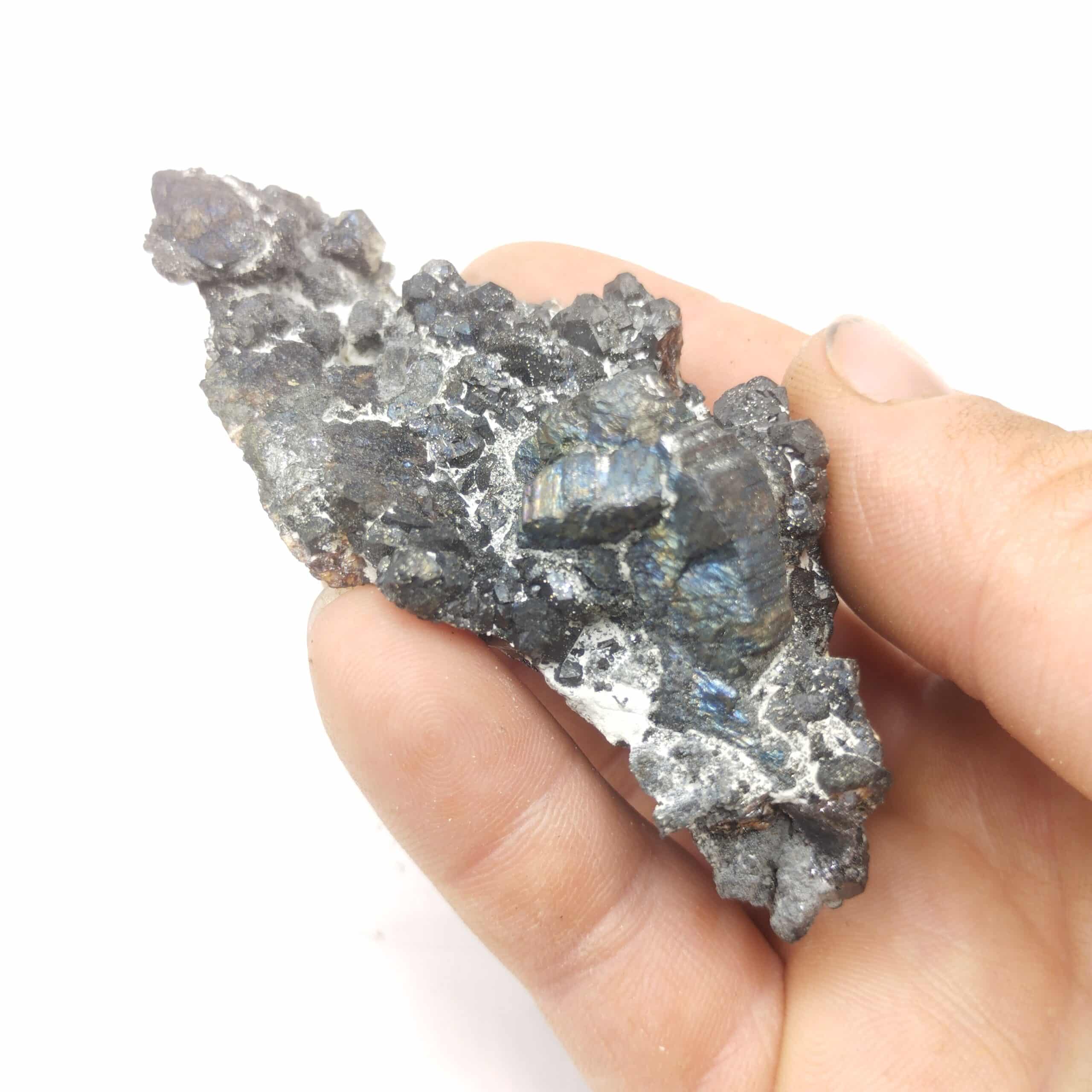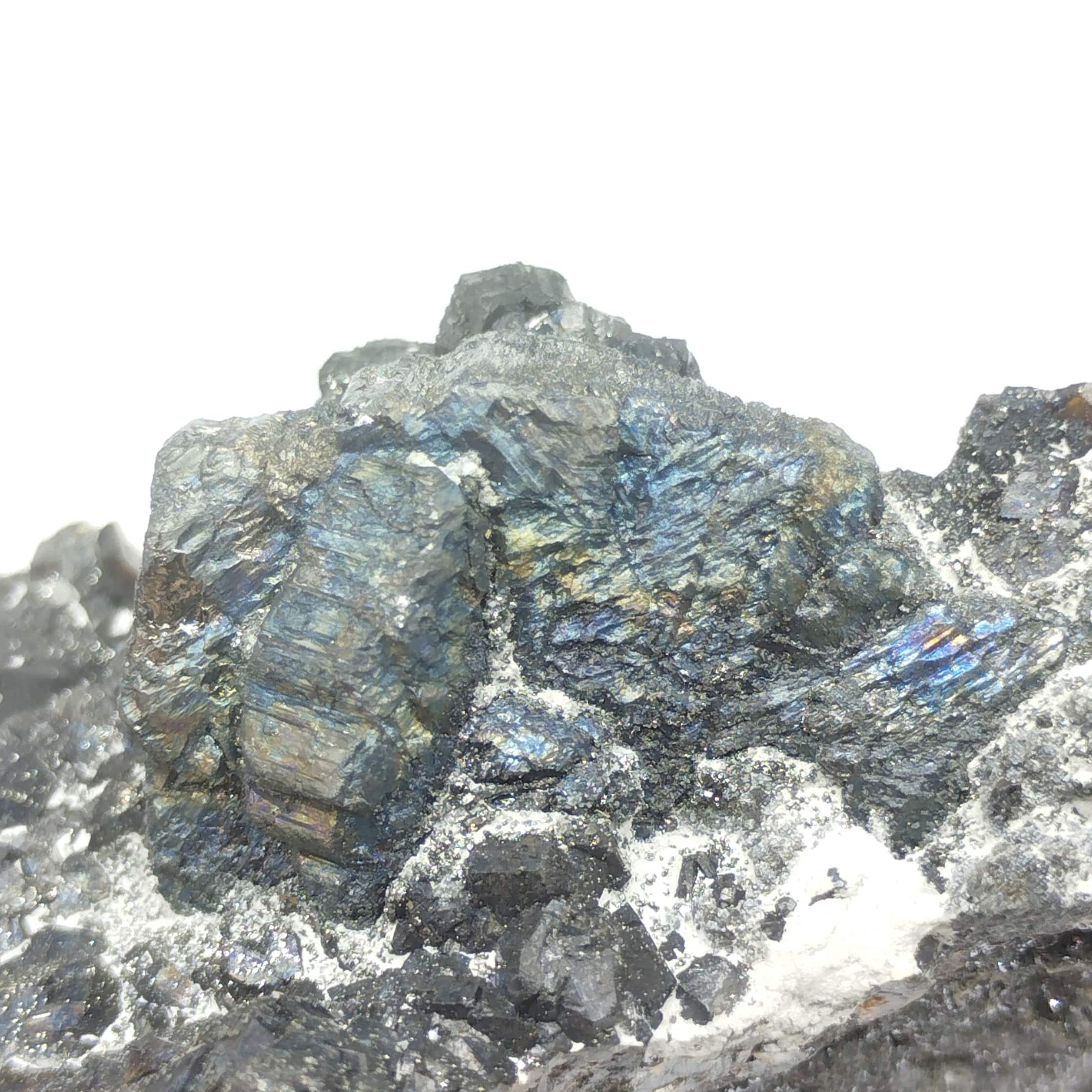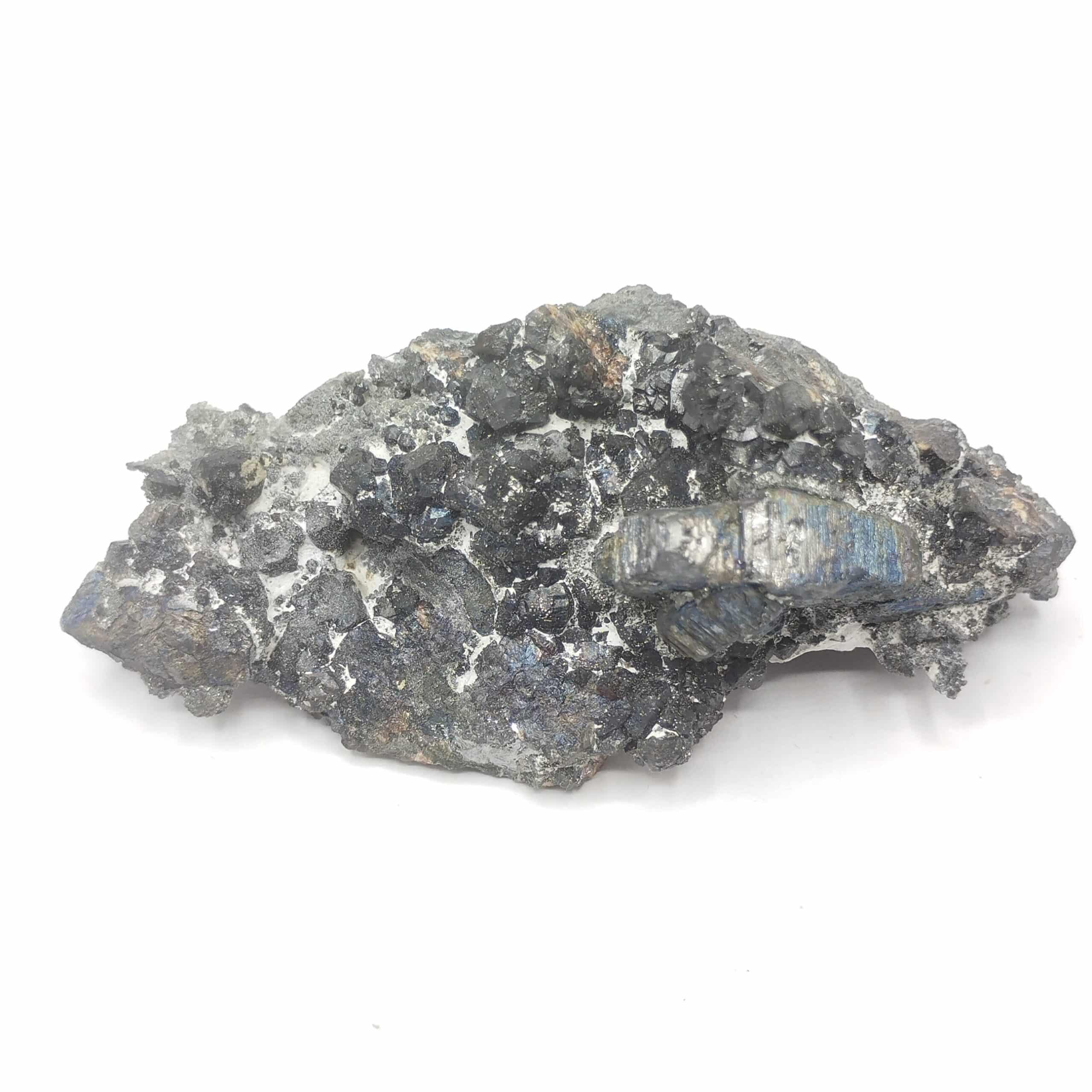 Groupe de bons cristaux de bournonite noirs à cristallisation en roues, et sphalérite en provenance de l’ancienne mine des Malines à Saint Laurent le Minier dans le département du Gard.