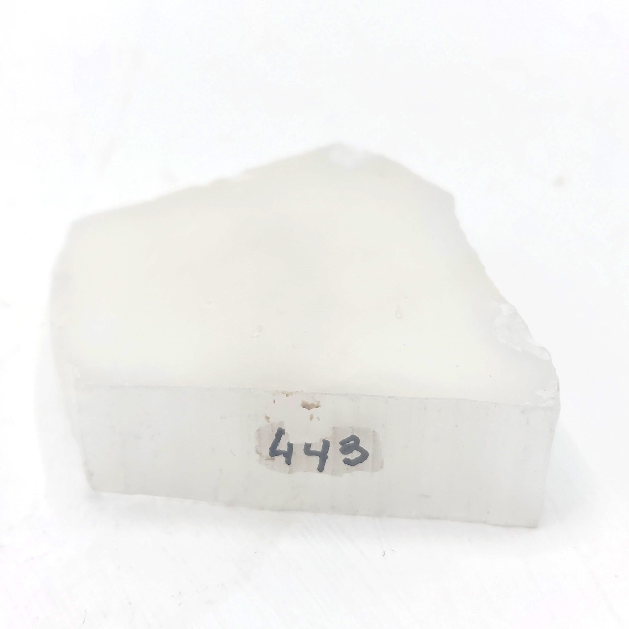 Un morceau massif d’ulexite taillé et poli, en provenance de Bore, comté de Kern, Californie, États-Unis.