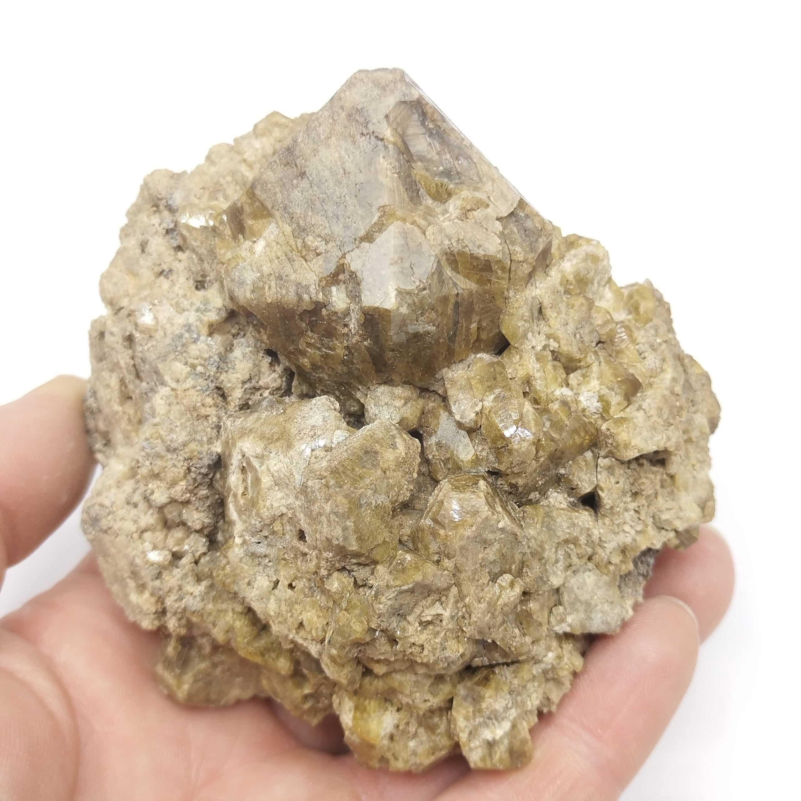 Bon cristal verdâtre de vésuvianite sur vésuvianite massive.